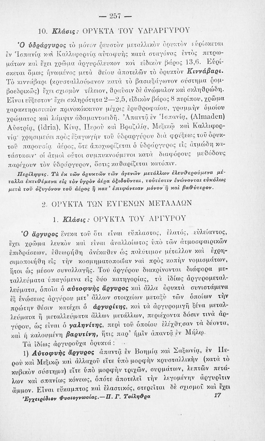 Μεθοδικόν Εγχειρίδιον Φυσιογνωσίας περιλαμβάνον στοιχεία Ανθρωπολογίας, Ζωολογίας, Φυτολογίας, Ορυκτολογίας και Γεωλογίας δια τους μαθητάς και μαθητρίας των Εμπορικών Σχολών