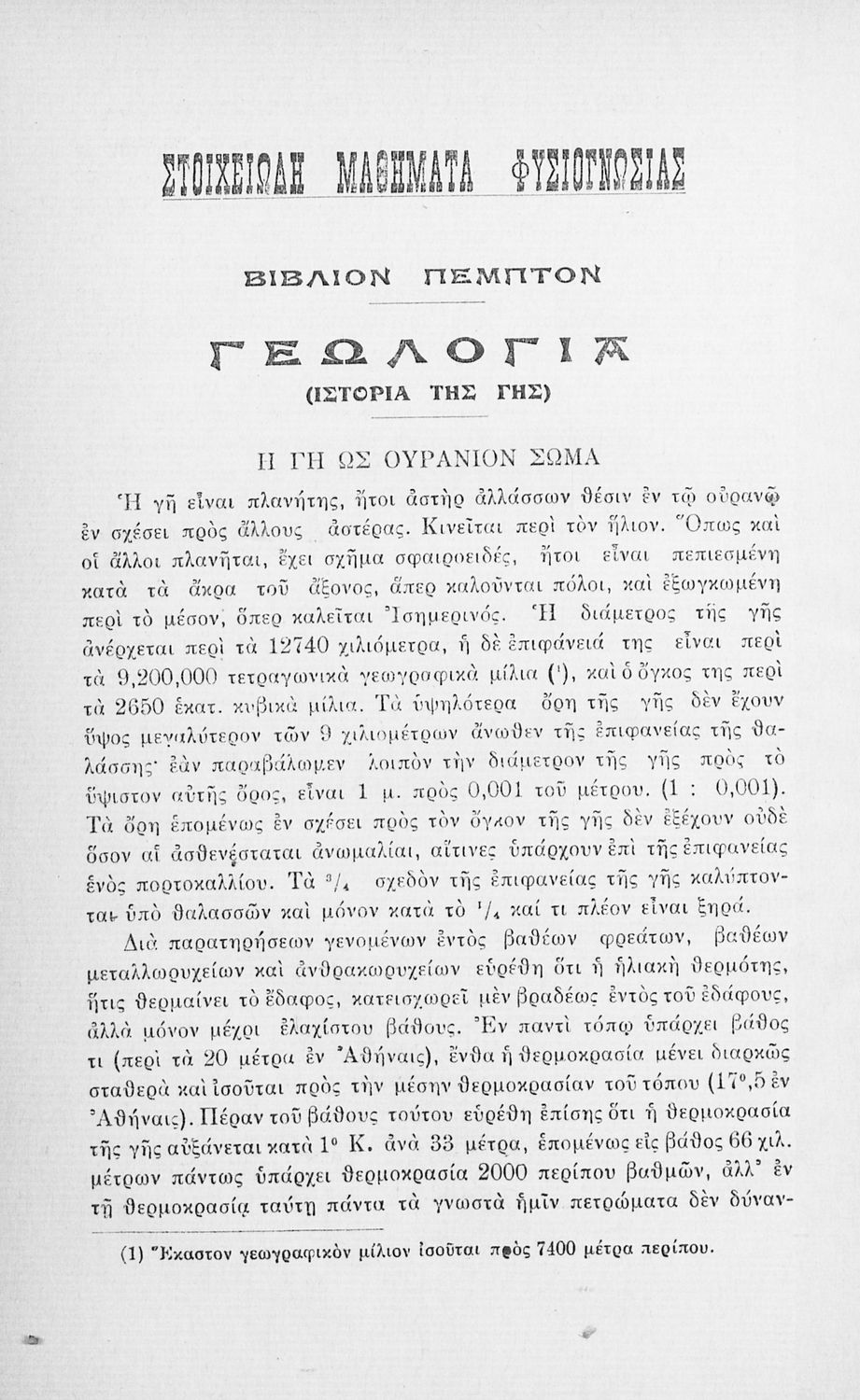 Τίτλος: Μεθοδικόν Εγχειρίδιον Φυσιογνωσίας περιλαμβάνον στοιχεία Ανθρωπολογίας, Ζωολογίας, Φυτολογίας, Ορυκτολογίας και Γεωλογίας δια τους μαθητάς και μαθητρίας των Εμπορικών Σχολών
