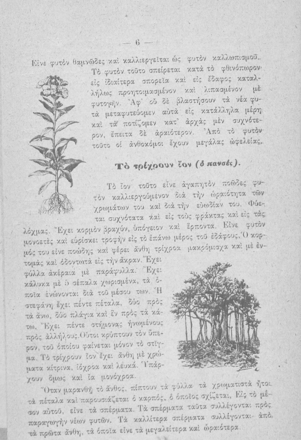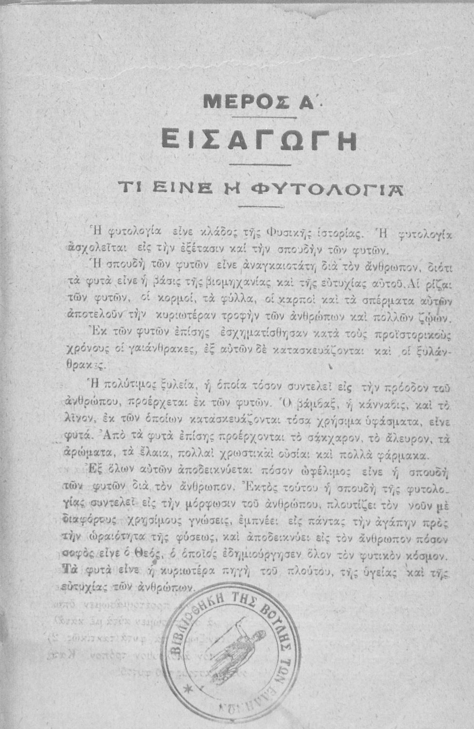 Μαθητικό βοήθημα Φυσικής Ιστορίας Δημοτικού που εστιάζει στη φυτολογία και την ορυκτολογία και κατατάσσει τα φυτά ανάλογα με τη συνομοταξία στην οποία ανήκουν.