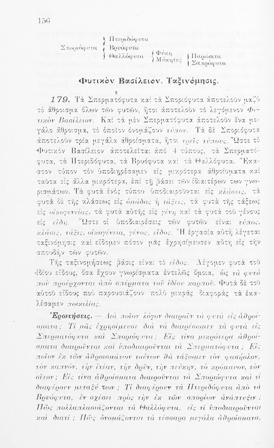 Σχολικό εγχειρίδιο Φυτολογίας Β΄ Εξαταξίου Γυμνασίου και Δ΄ Οκτατάξιου Γυμνασίου που παρουσιάζει τα φυτά ανάλογα με την συνομοταξία στην οποία ανήκουν.