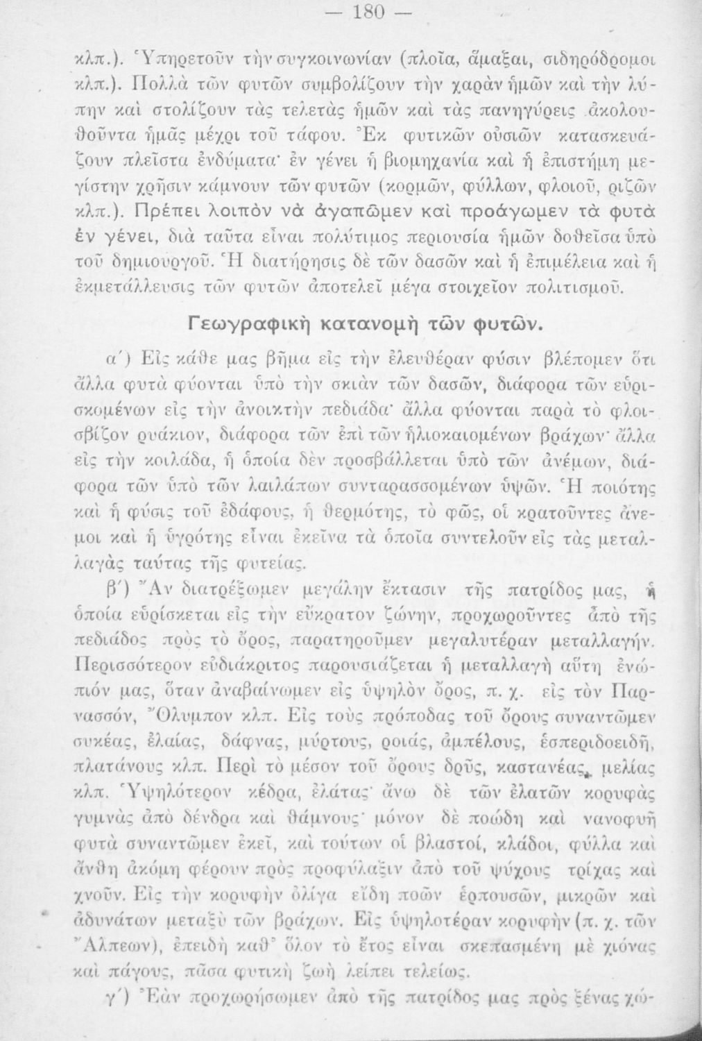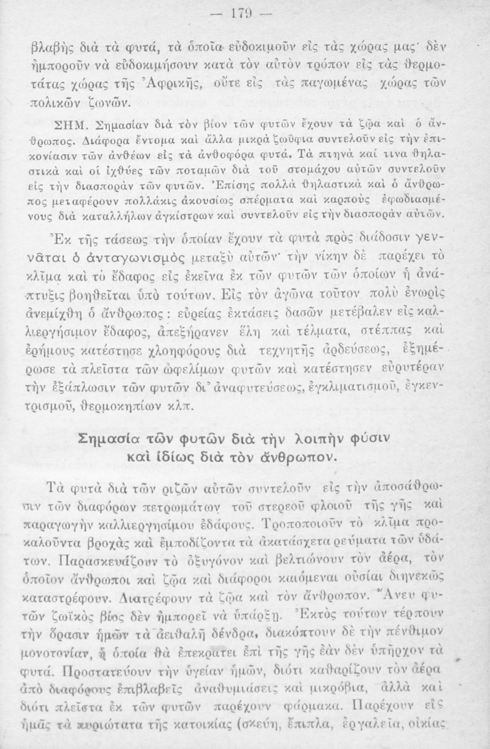 Σχολικό εγχειρίδιο της Β΄ Γυμνασίου για το μάθημα της Φυτολογίας. Το εγχειρίδιο αποτελείται από δύο μέρη, το ειδικό και το γενικό μέρος. Το ειδικό μέρος περιλαμβάνει την προετοιμασία των μαθητών για την καλύτερη μάθηση και επεξεργασία της ύλης του μαθήματος, την σχέση των φυτών από το κλίμα που επικρατεί σε κάθε περιοχή και τις φυσικές ιδιότητες κάθε φυτού. Το γενικό μέρος ασχολείται με την ανατομία και την φυσιολογία των φυτών (εσωτερική κατασκευή των φυτών).