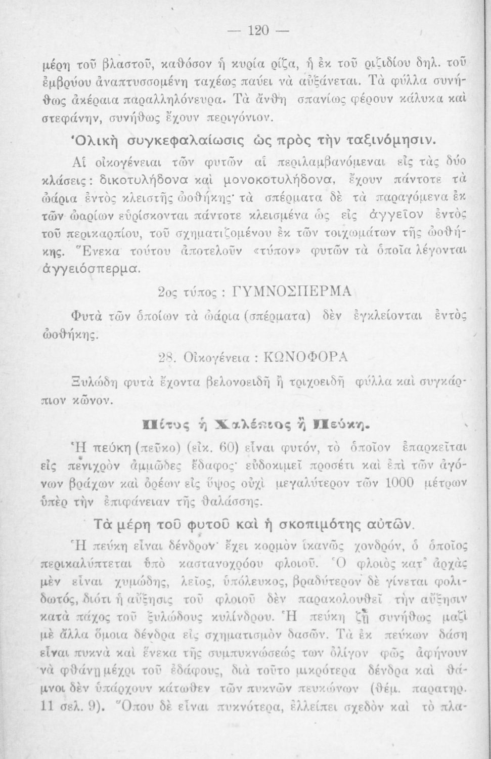 Σχολικό εγχειρίδιο Φυτολογίας Β΄ Εξαταξίου Γυμνασίου και Δ΄ Οκτατάξιου Γυμνασίου που παρουσιάζει τα φυτά ανάλογα με την συνομοταξία στην οποία ανήκουν.