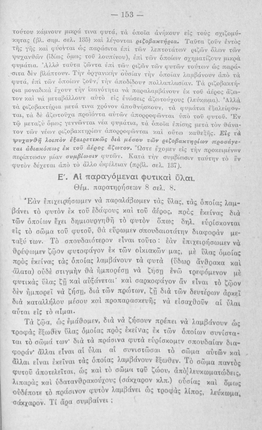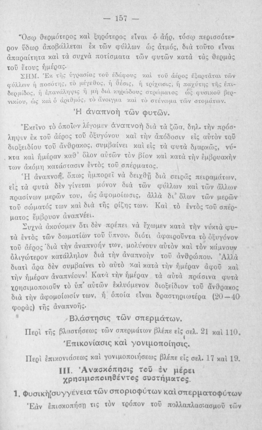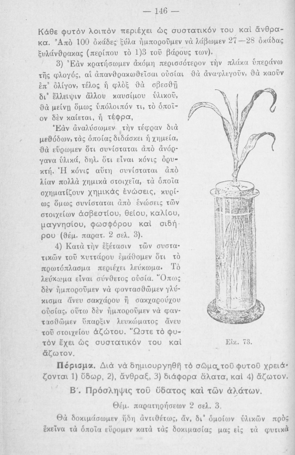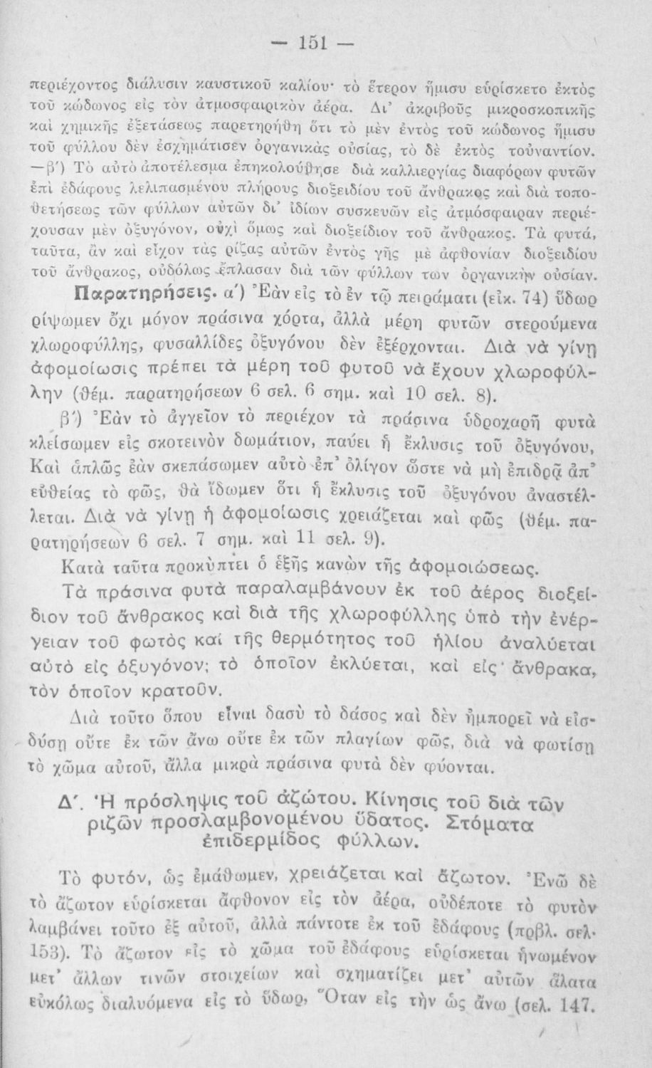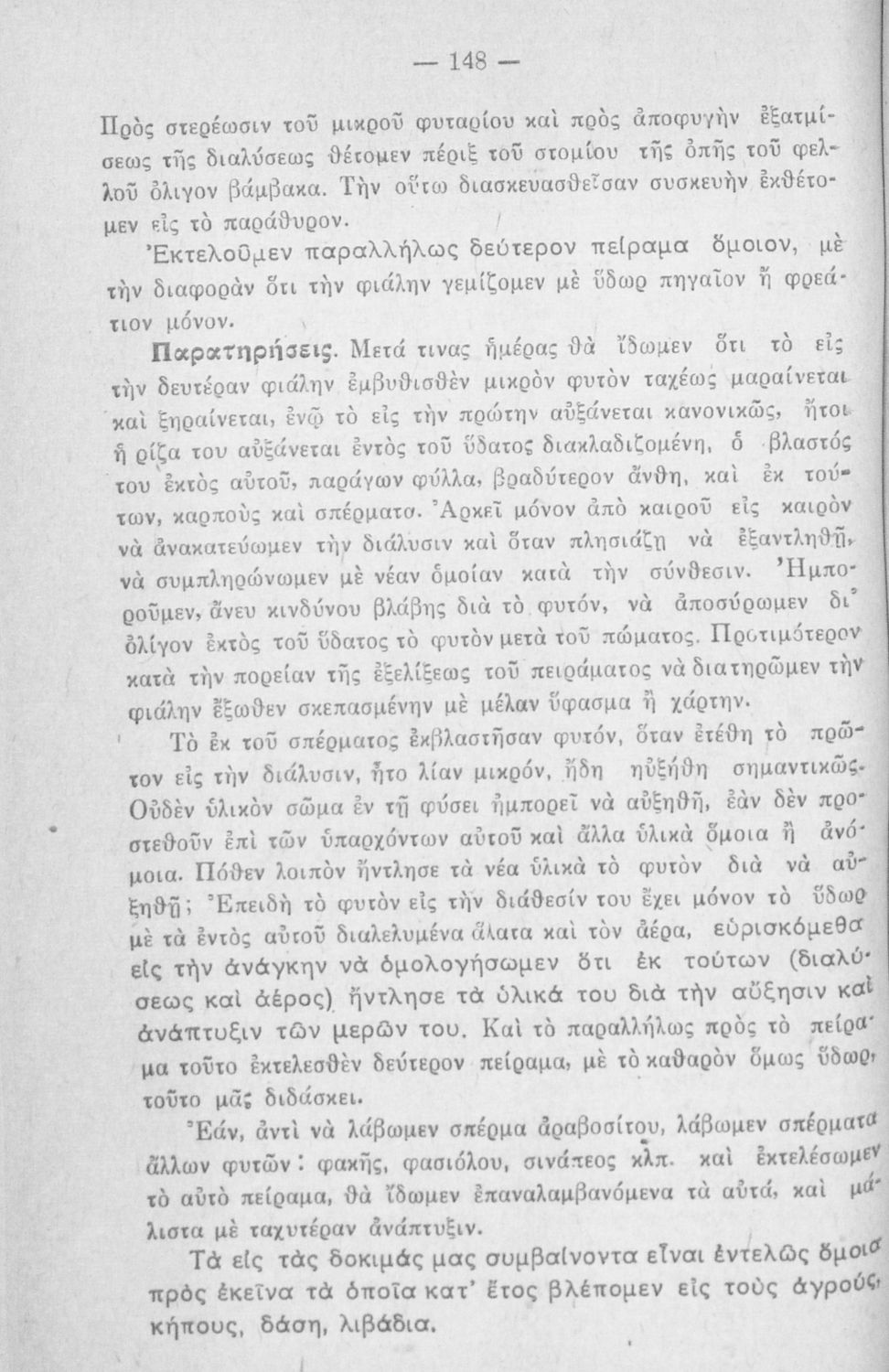 Σχολικό εγχειρίδιο της Δ΄ Γυμνασίου για το μάθημα της Φυτολογίας. Το εγχειρίδιο αποτελείται από δύο μέρη, το ειδικό και το γενικό μέρος. Το ειδικό μέρος περιλαμβάνει την προετοιμασία των μαθητών για την καλύτερη μάθηση και επεξεργασία της ύλης του μαθήματος, την σχέση των φυτών από το κλίμα που επικρατεί σε κάθε περιοχή και τις φυσικές ιδιότητες κάθε φυτού. Το γενικό μέρος ασχολείται με την ανατομία και την φυσιολογία των φυτών (εσωτερική κατασκευή των φυτών).