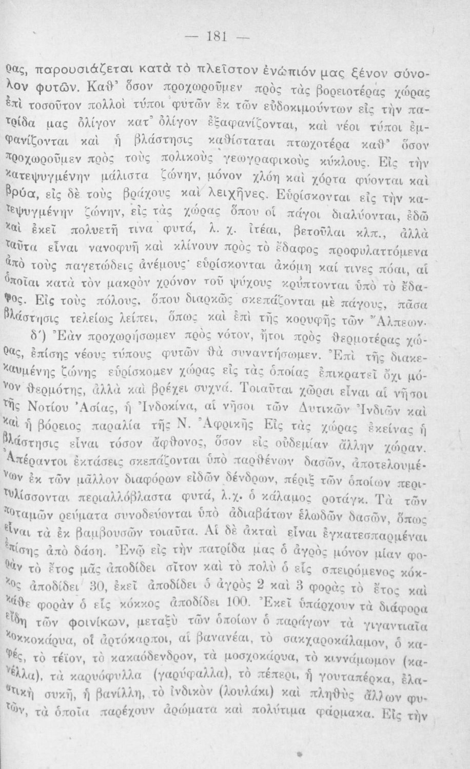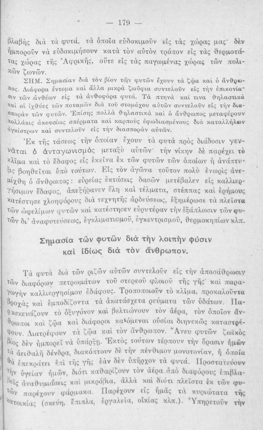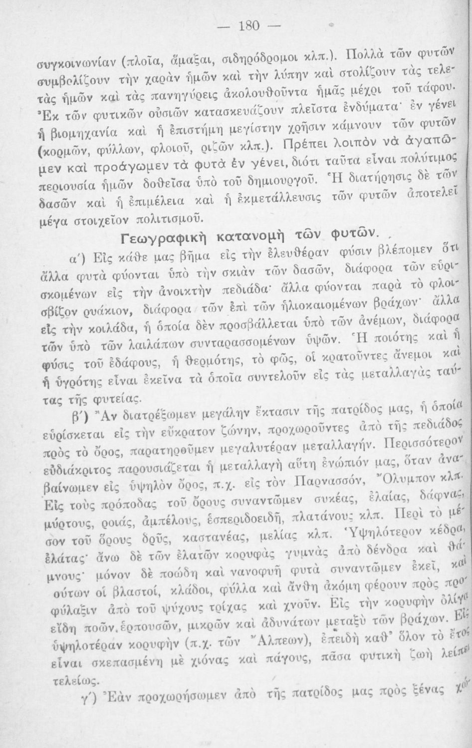 Σχολικό εγχειρίδιο της Δ΄ Γυμνασίου για το μάθημα της Φυτολογίας. Το εγχειρίδιο αποτελείται από δύο μέρη, το ειδικό και το γενικό μέρος. Το ειδικό μέρος περιλαμβάνει την προετοιμασία των μαθητών για την καλύτερη μάθηση και επεξεργασία της ύλης του μαθήματος, την σχέση των φυτών από το κλίμα που επικρατεί σε κάθε περιοχή και τις φυσικές ιδιότητες κάθε φυτού. Το γενικό μέρος ασχολείται με την ανατομία και την φυσιολογία των φυτών (εσωτερική κατασκευή των φυτών).