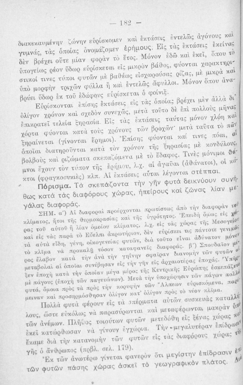 Βαθμίδα εκπαίδευσης: Δευτεροβάθμια Τάξη: Δ' Γυμνασίου Μάθημα: Φυτολογία Γλώσσα: Καθαρεύουσα Παρουσίαση περιεχομένου: Σχολικό εγχειρίδιο της Δ΄ Γυμνασίου για το μάθημα της Φυτολογίας. Το εγχειρίδιο αποτελείται από δύο μέρη, το ειδικό και το γενικό μέρος. Το ειδικό μέρος περιλαμβάνει την προετοιμασία των μαθητών για την καλύτερη μάθηση και επεξεργασία της ύλης του μαθήματος, την σχέση των φυτών από το κλίμα που επικρατεί σε κάθε περιοχή και τις φυσικές ιδιότητες κάθε φυτού. Το γενικό μέρος ασχολείται με την ανατομία και την φυσιολογία των φυτών (εσωτερική κατασκευή των φυτών). |
