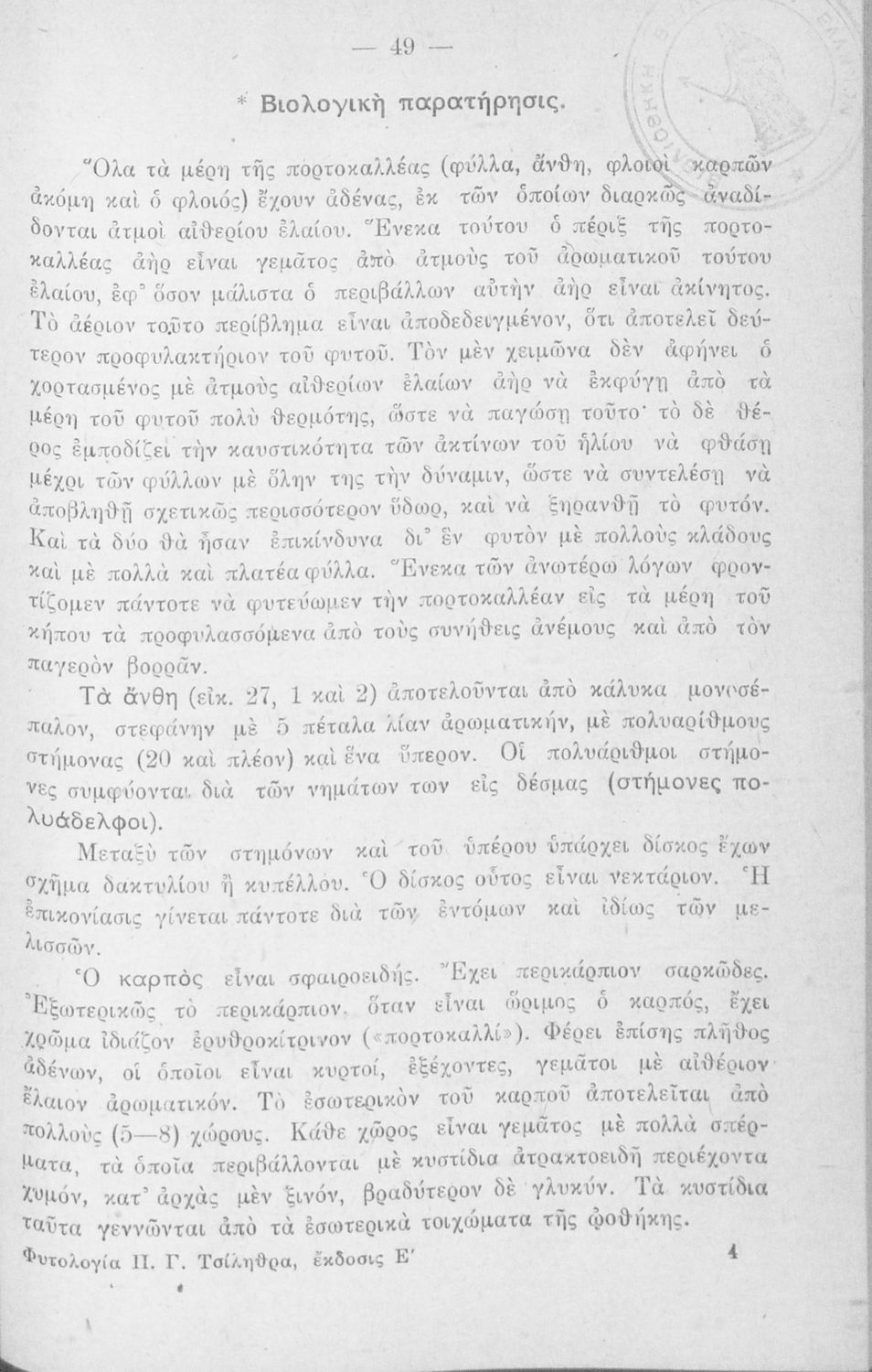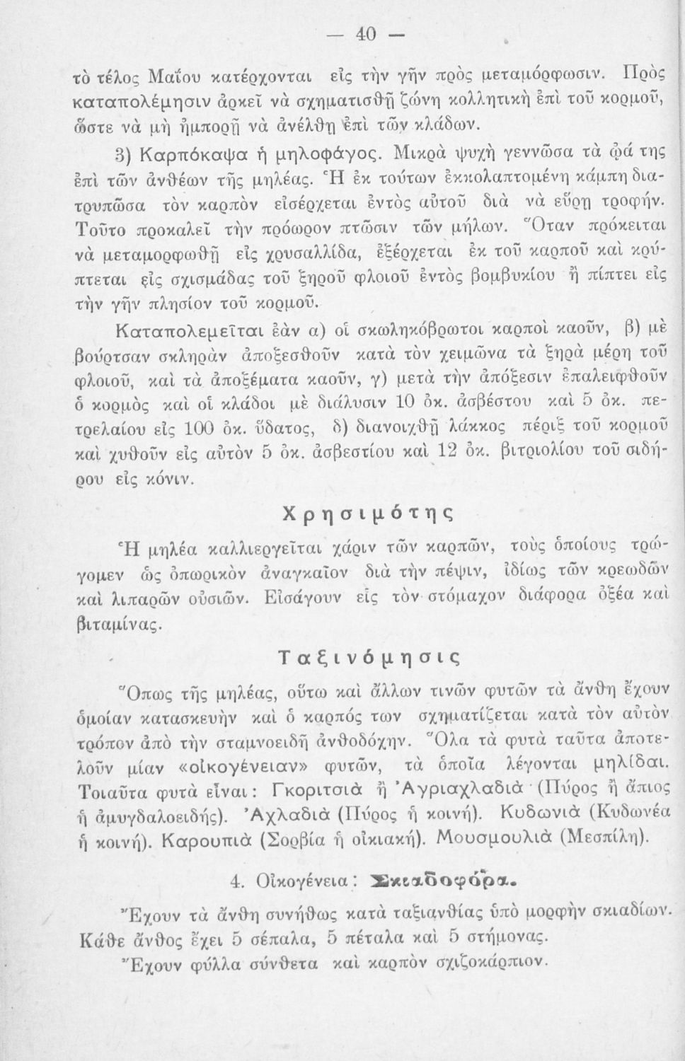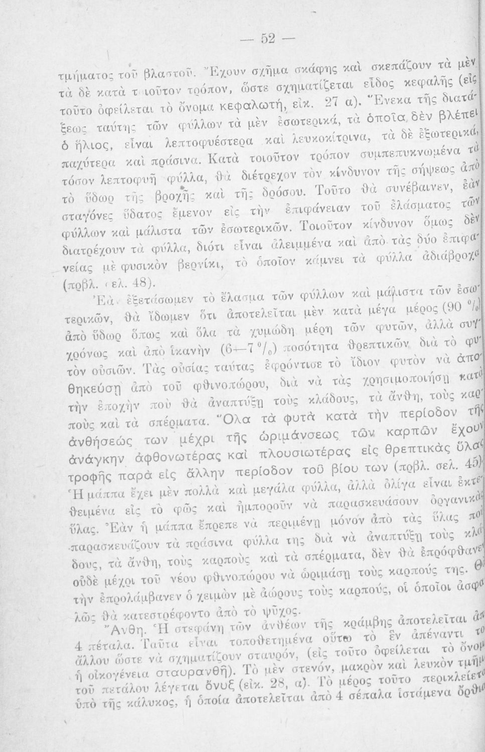 Σχολικό εγχειρίδιο της Δ΄ Γυμνασίου για το μάθημα της Φυτολογίας. Το εγχειρίδιο αποτελείται από δύο μέρη, το ειδικό και το γενικό μέρος. Το ειδικό μέρος περιλαμβάνει την προετοιμασία των μαθητών για την καλύτερη μάθηση και επεξεργασία της ύλης του μαθήματος, την σχέση των φυτών από το κλίμα που επικρατεί σε κάθε περιοχή και τις φυσικές ιδιότητες κάθε φυτού. Το γενικό μέρος ασχολείται με την ανατομία και την φυσιολογία των φυτών (εσωτερική κατασκευή των φυτών).