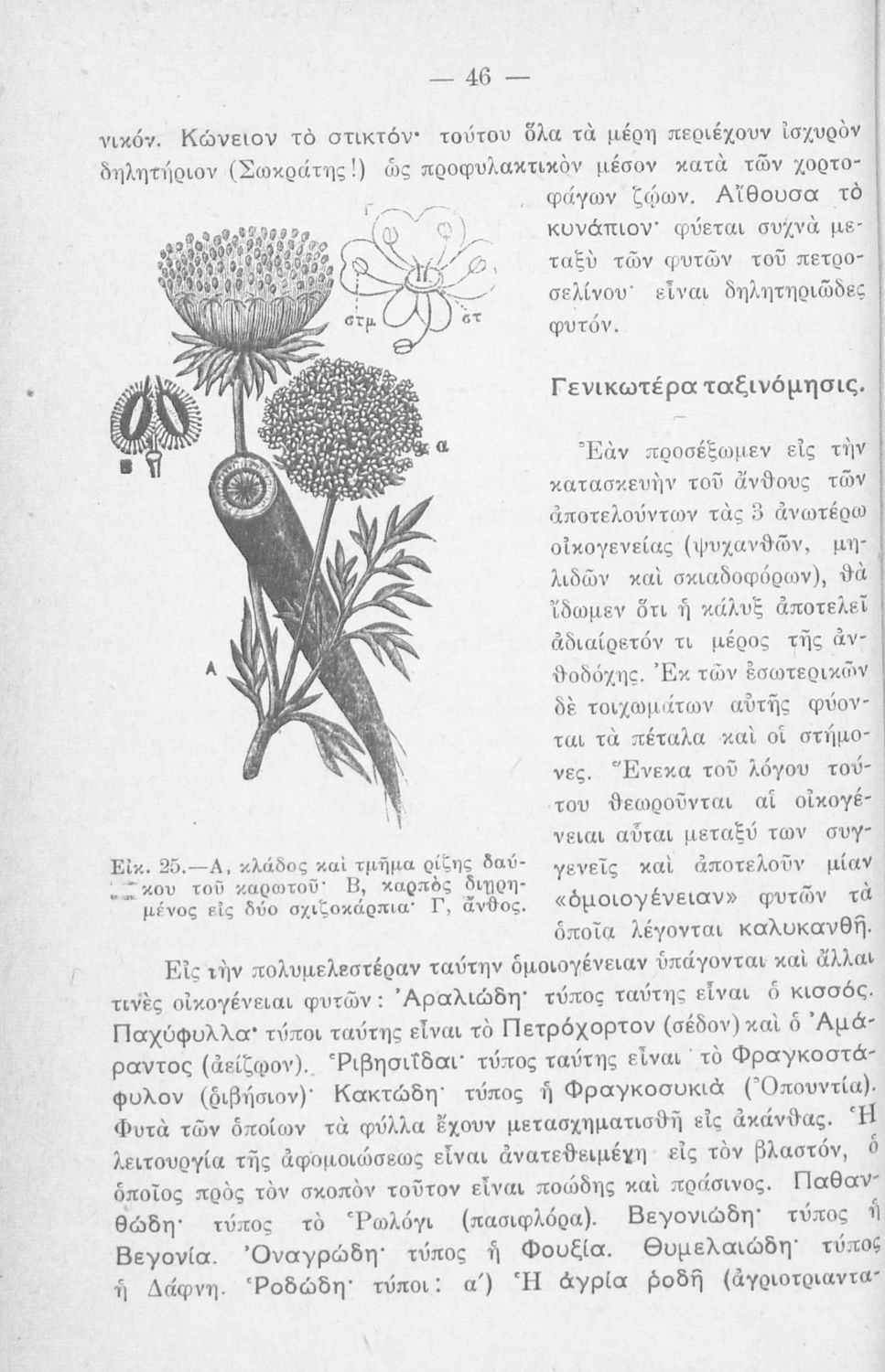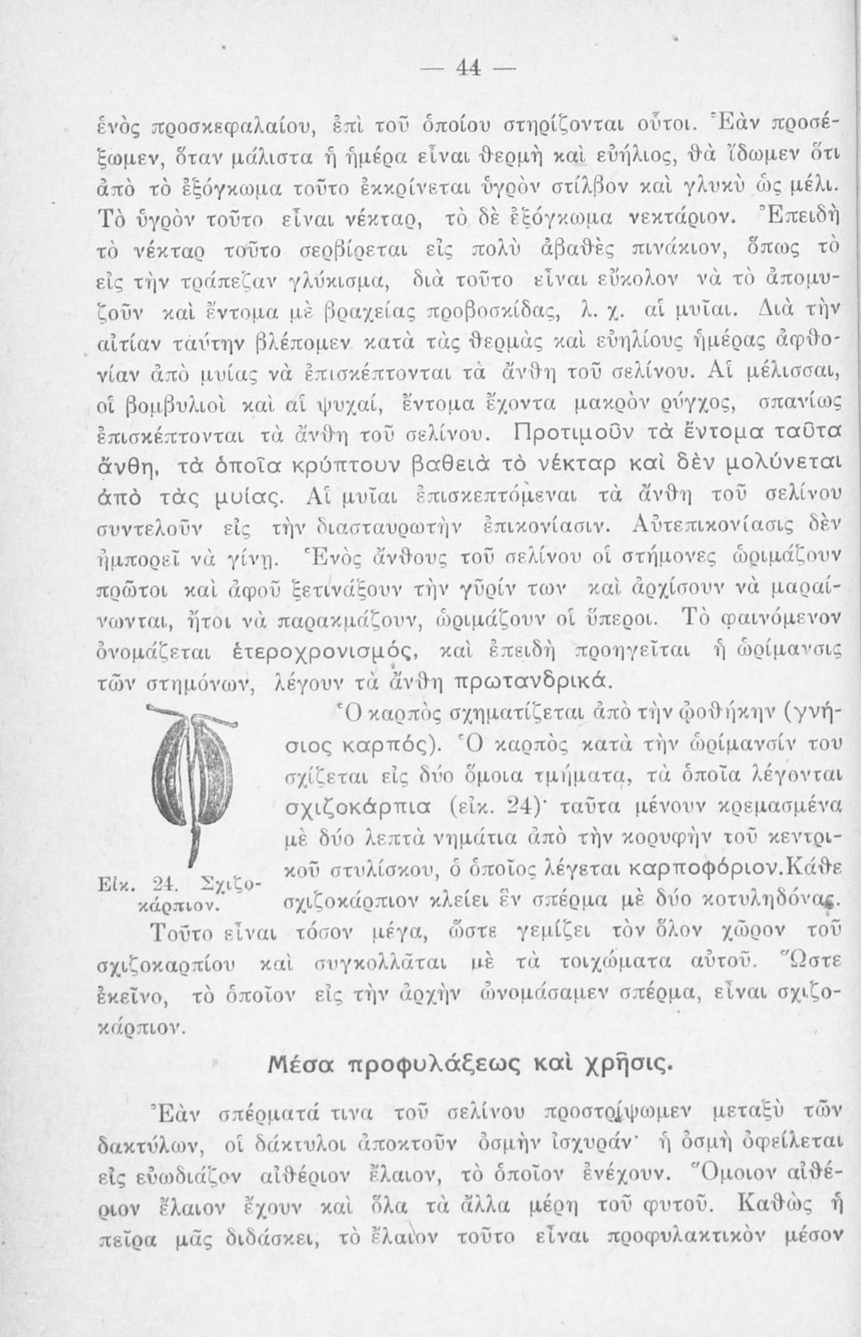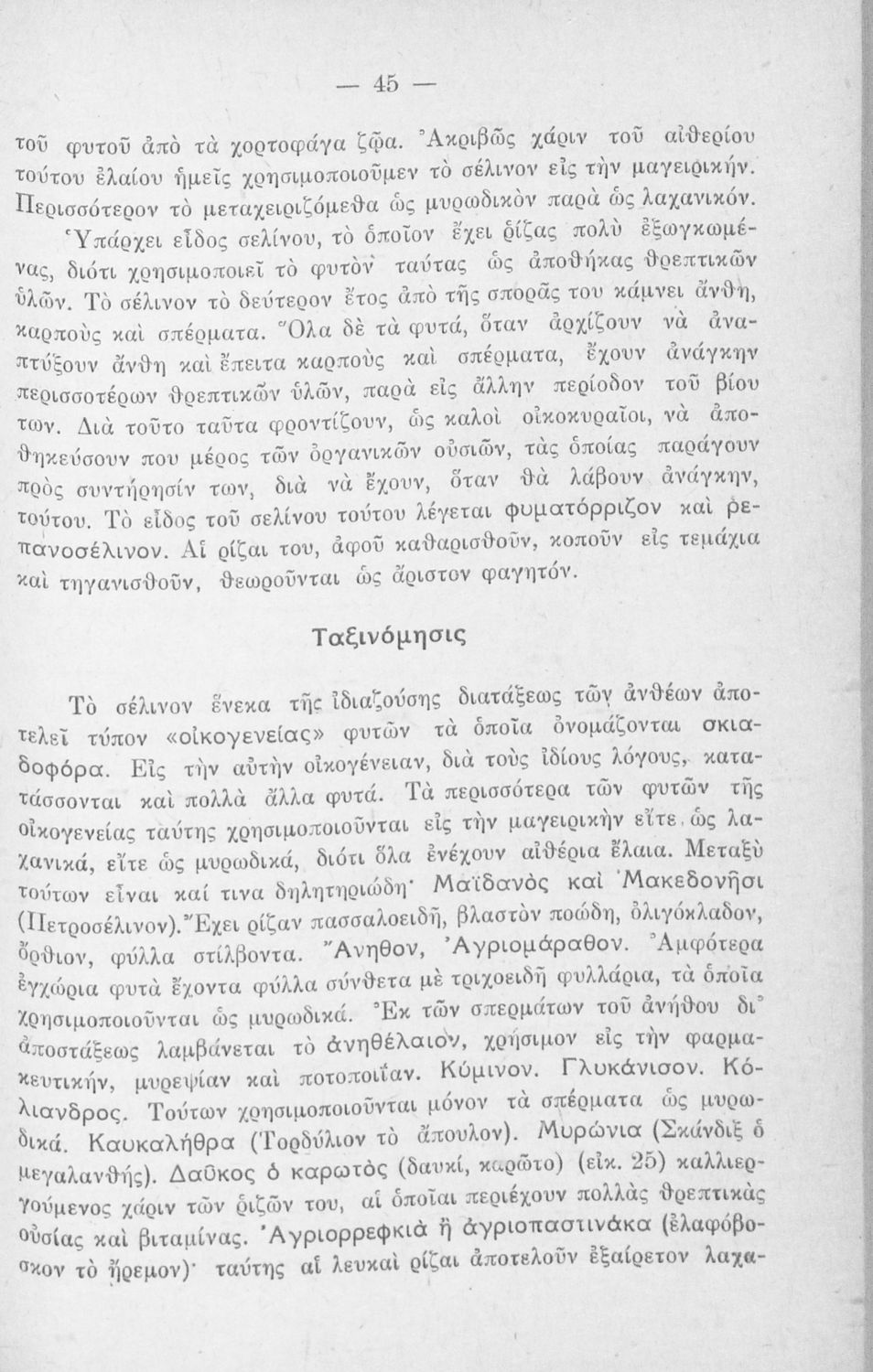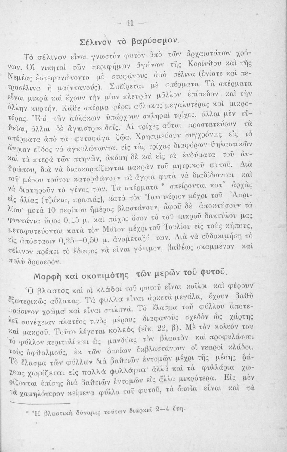 Σχολικό εγχειρίδιο της Δ΄ Γυμνασίου για το μάθημα της Φυτολογίας. Το εγχειρίδιο αποτελείται από δύο μέρη, το ειδικό και το γενικό μέρος. Το ειδικό μέρος περιλαμβάνει την προετοιμασία των μαθητών για την καλύτερη μάθηση και επεξεργασία της ύλης του μαθήματος, την σχέση των φυτών από το κλίμα που επικρατεί σε κάθε περιοχή και τις φυσικές ιδιότητες κάθε φυτού. Το γενικό μέρος ασχολείται με την ανατομία και την φυσιολογία των φυτών (εσωτερική κατασκευή των φυτών).