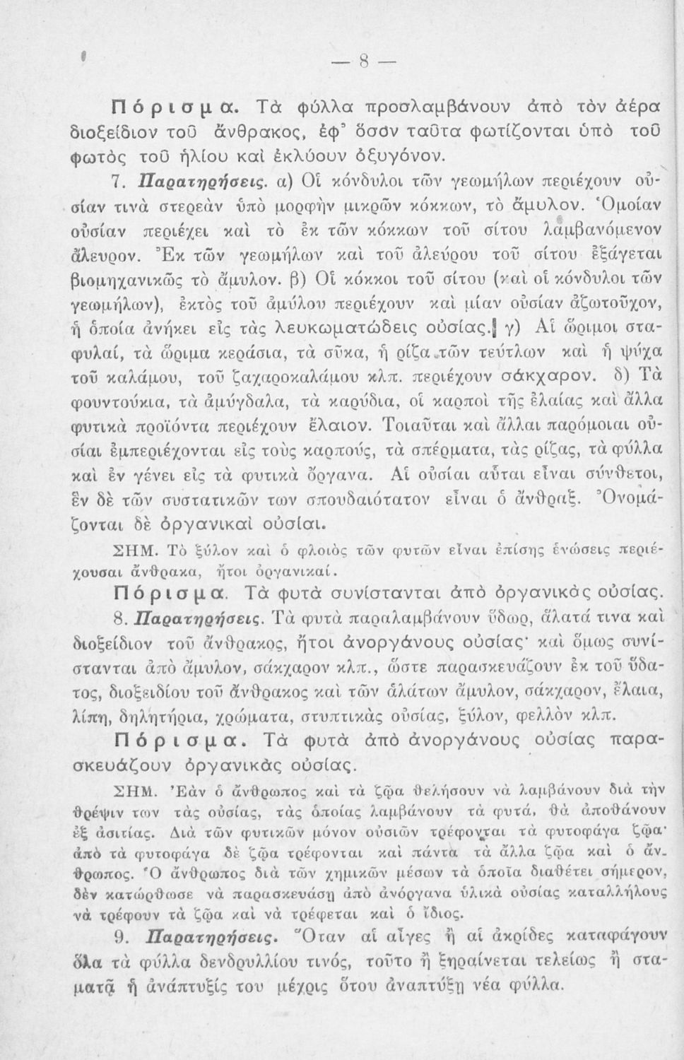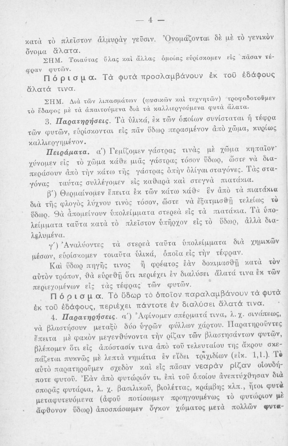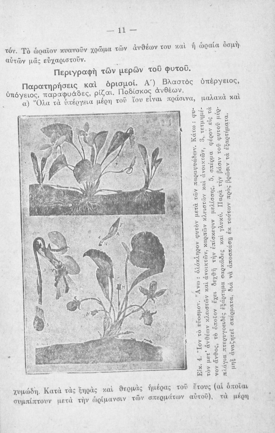 Σχολικό εγχειρίδιο της Δ΄ Γυμνασίου για το μάθημα της Φυτολογίας. Το εγχειρίδιο αποτελείται από δύο μέρη, το ειδικό και το γενικό μέρος. Το ειδικό μέρος περιλαμβάνει την προετοιμασία των μαθητών για την καλύτερη μάθηση και επεξεργασία της ύλης του μαθήματος, την σχέση των φυτών από το κλίμα που επικρατεί σε κάθε περιοχή και τις φυσικές ιδιότητες κάθε φυτού. Το γενικό μέρος ασχολείται με την ανατομία και την φυσιολογία των φυτών (εσωτερική κατασκευή των φυτών).