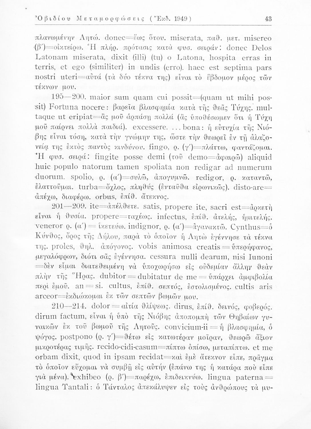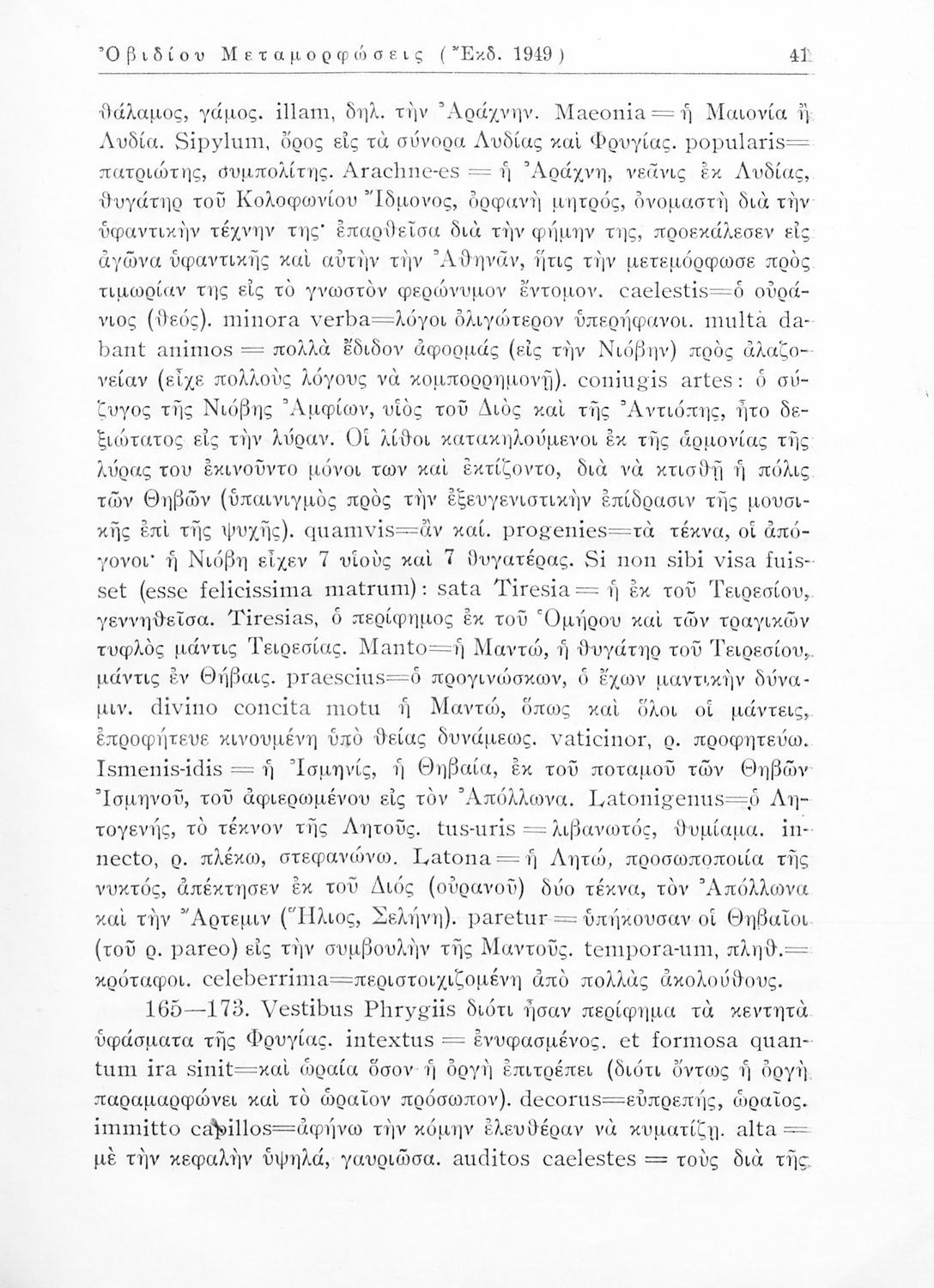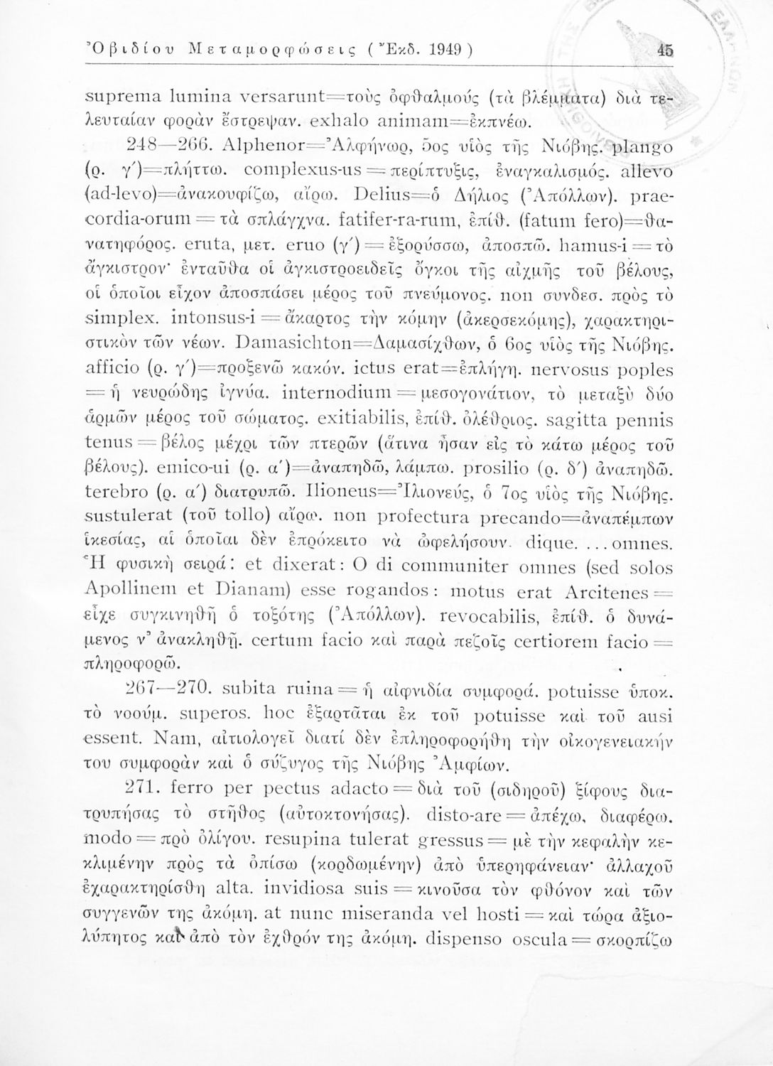 Σχολικό εγχειρίδιο Λατινικών για την Ε΄ Γυμνασίου παλαιού τύπου και την ΣΤ΄ Γυμνασίου νέου τύπου που περιέχει βιογραφικό σημείωμα του Οβίδιου, εισαγωγικά σχόλια, αποσπάσματα από τις Μεταμορφώσεις και ...