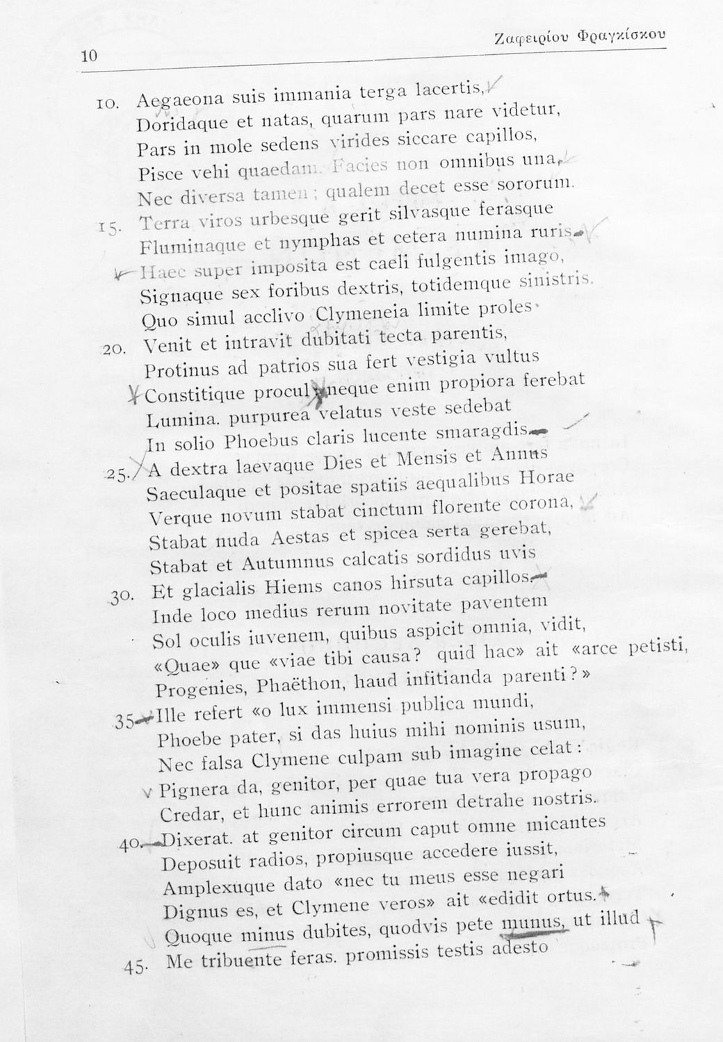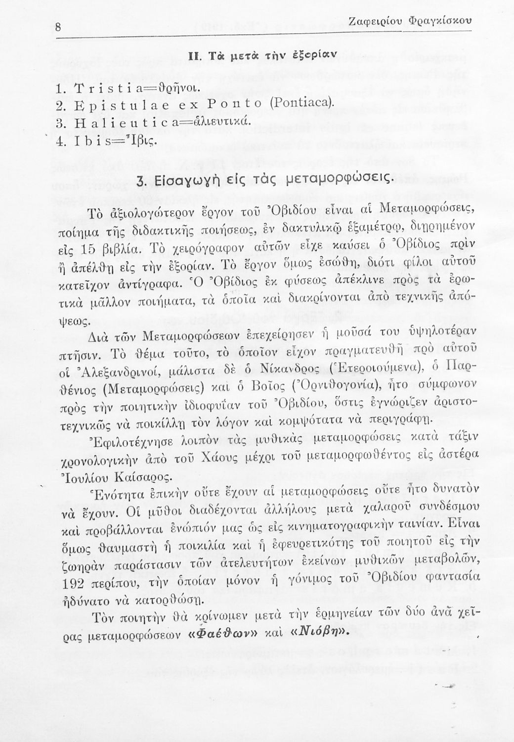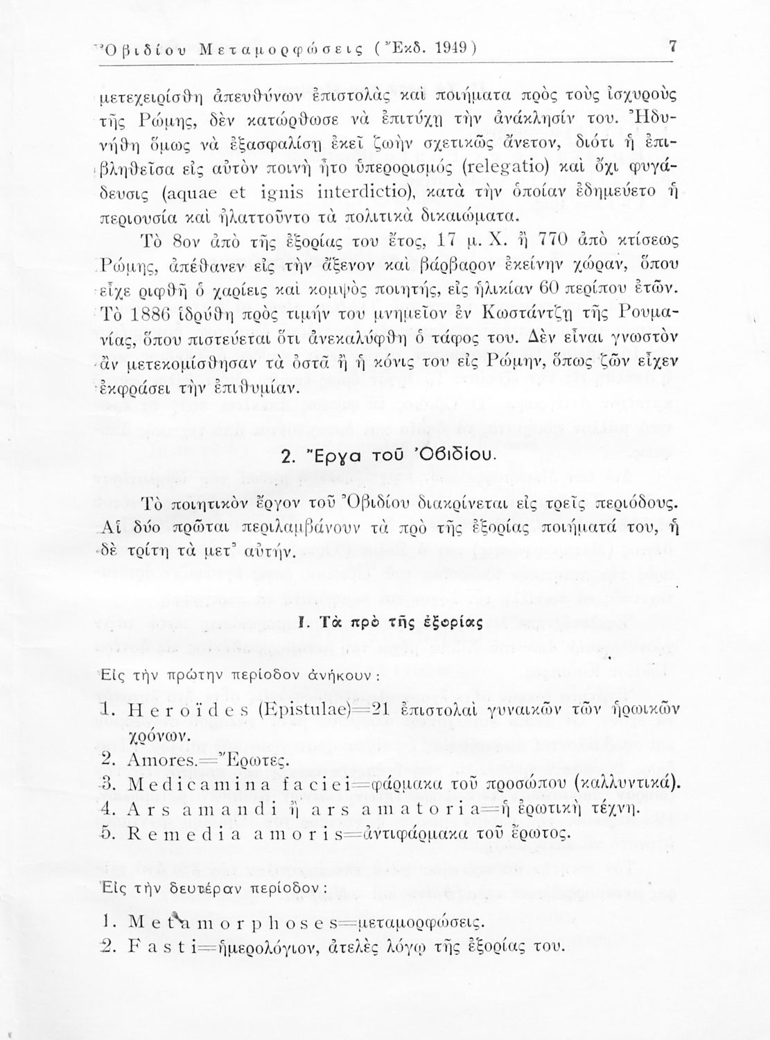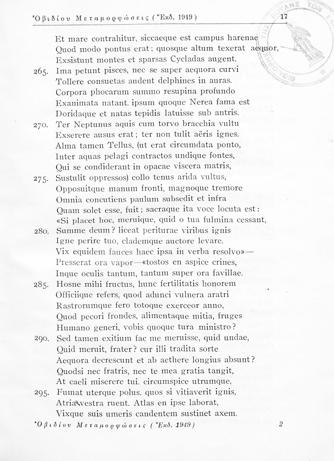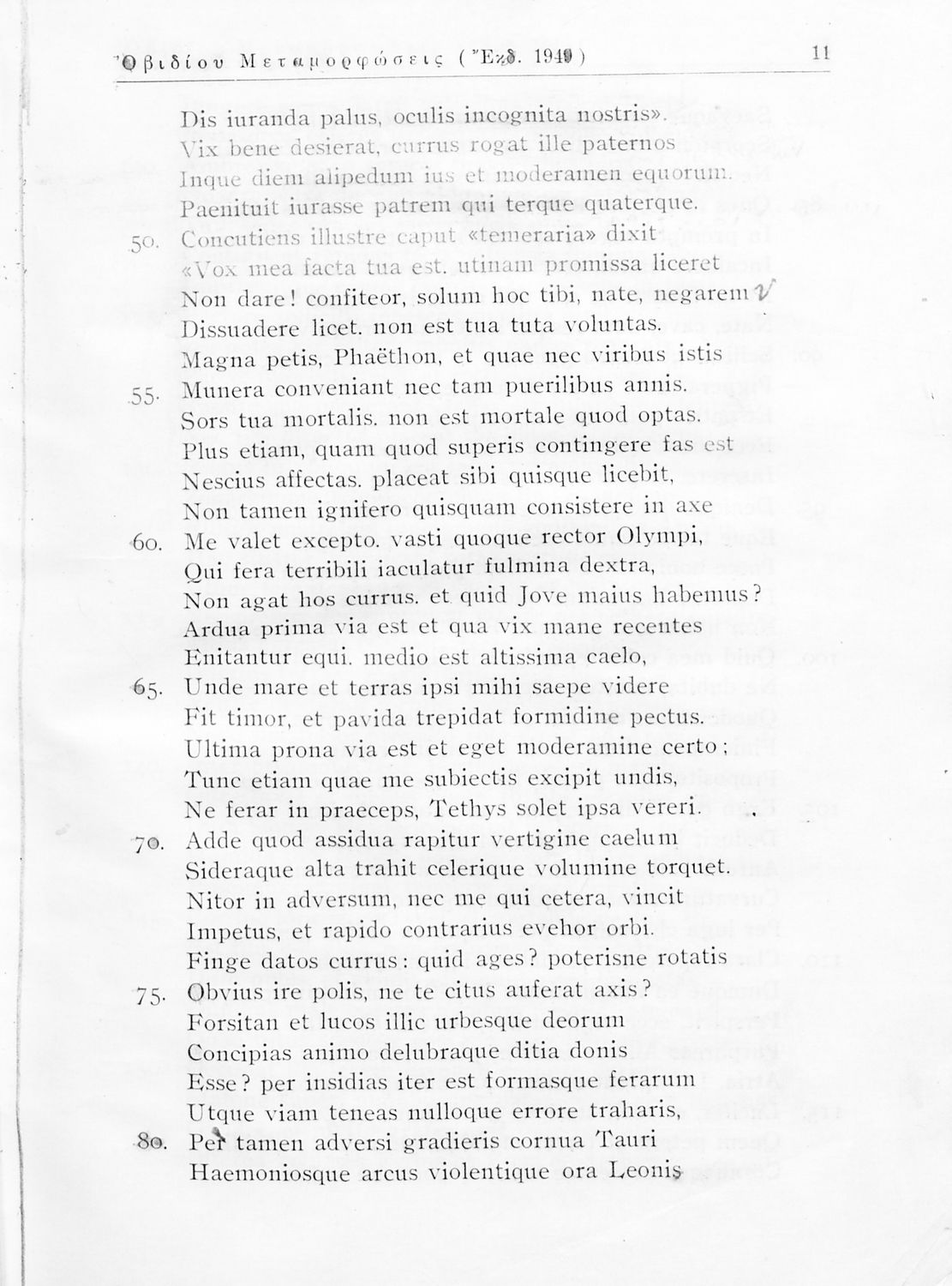 Σχολικό εγχειρίδιο Λατινικών για τους μαθητές της Ε΄ Γυμνασίου. Περιέχει τις “Μεταμορφώσεις” του Οβιδίου, “Φαίδων” και “Νιόβη” καθώς και γλωσσική και ερμηνευτική ανάλυση των κειμένων.