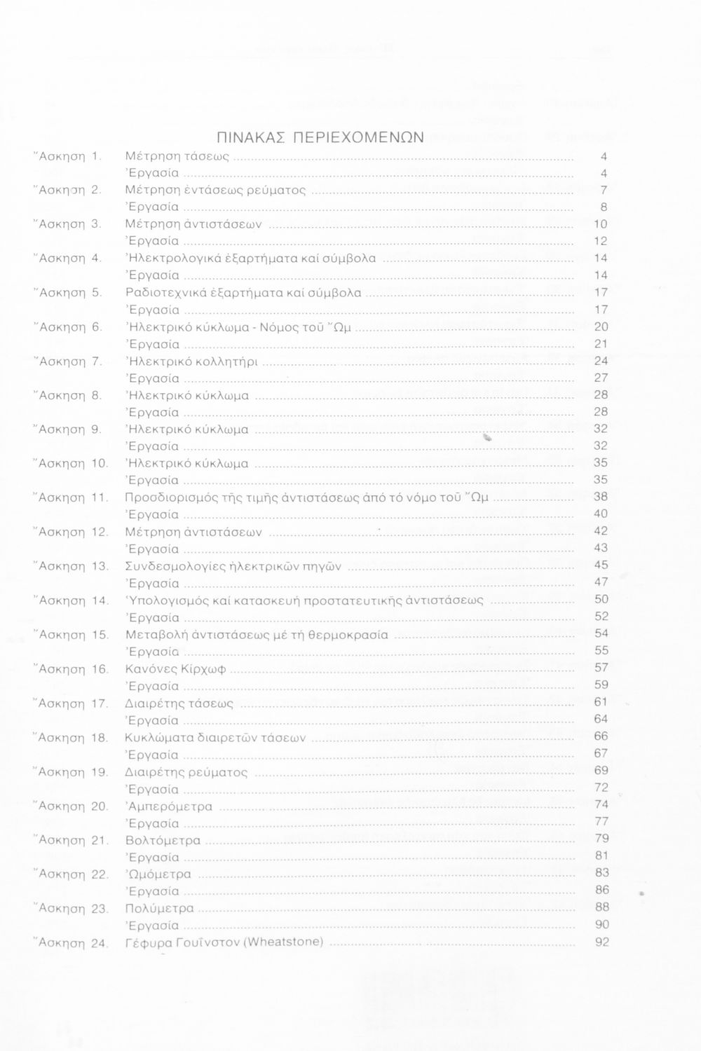 Σχολικό εγχειρίδιο Ηλεκτρολογίας της Γ' Τεχνικού Λυκείων που περιέχει ασκήσεις μέτρησης συνεχούς και εναλλασσόμενου ρεύματος και εσωτερικών ηλεκτρικών εγκαταστάσεων.