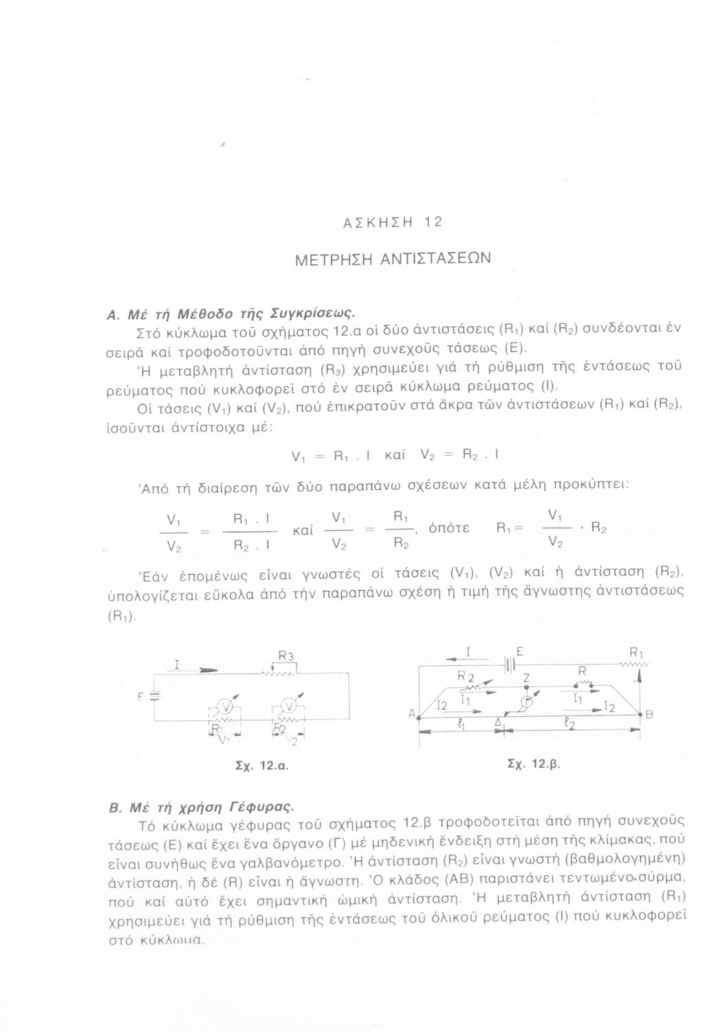 Σχολικό εγχειρίδιο Ηλεκτρολογίας της Γ' Τεχνικού Λυκείων που περιέχει ασκήσεις μέτρησης συνεχούς και εναλλασσόμενου ρεύματος και εσωτερικών ηλεκτρικών εγκαταστάσεων.