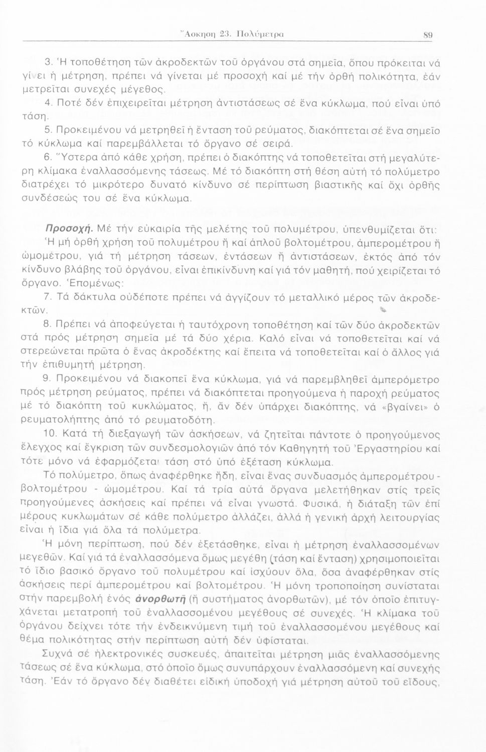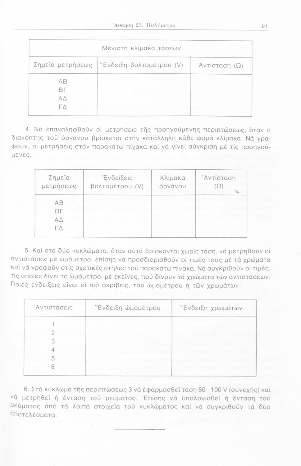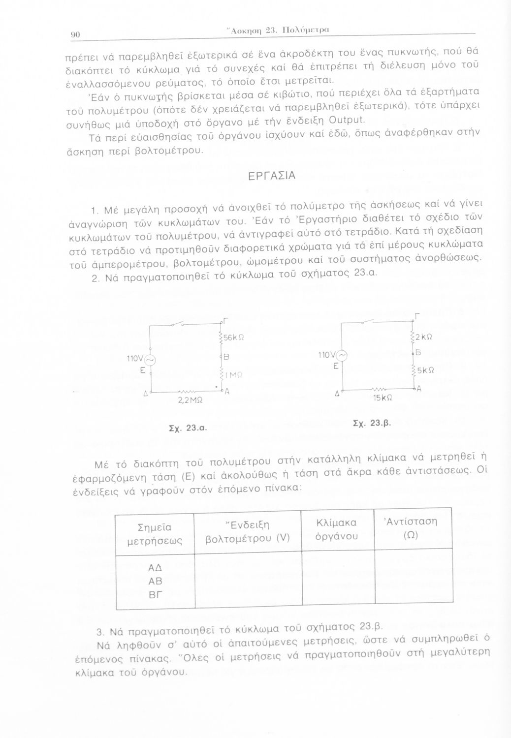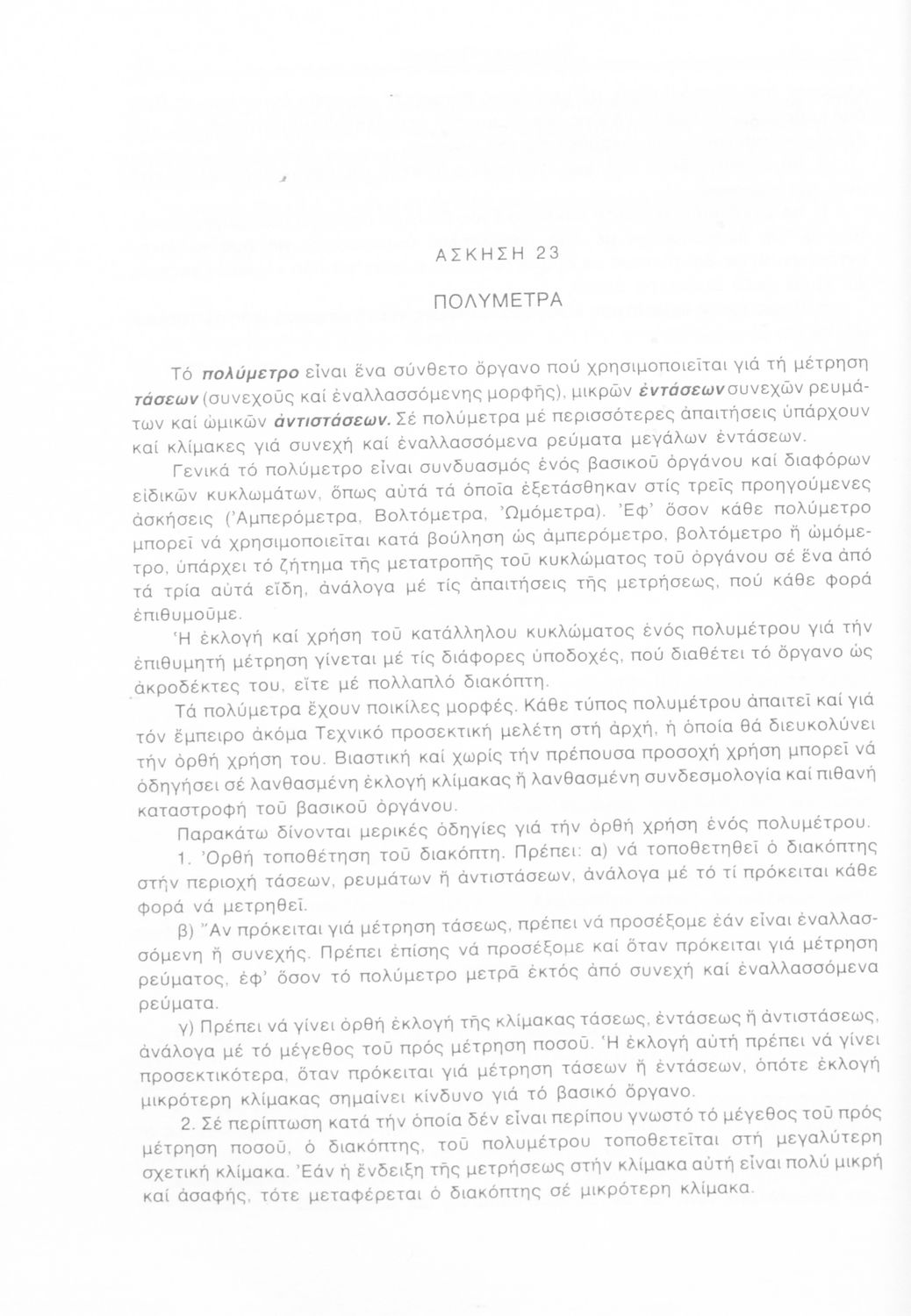 Σχολικό εγχειρίδιο Ηλεκτρολογίας της Γ' Τεχνικού Λυκείων που περιέχει ασκήσεις μέτρησης συνεχούς και εναλλασσόμενου ρεύματος και εσωτερικών ηλεκτρικών εγκαταστάσεων.
