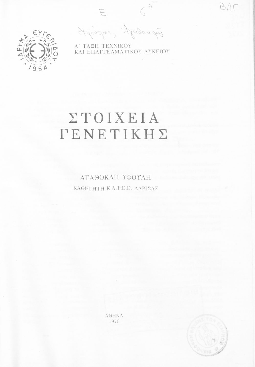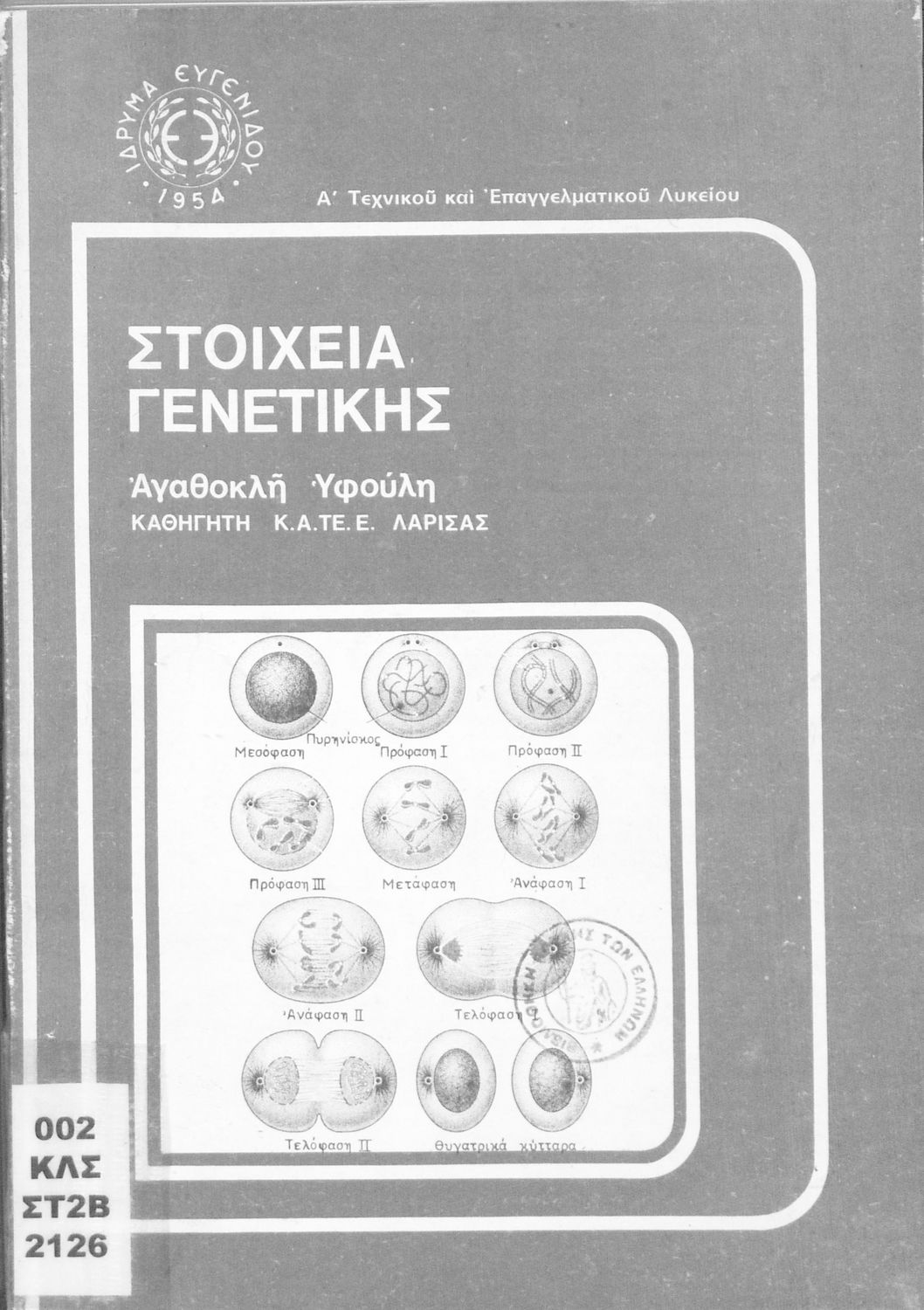 Σχολικό εγχειρίδιο για τους μαθητές της Α' τάξης των Μέσων Τεχνικών Επαγγελματικών Σχολών. Εισάγει τους μαθητές στις βασικές έννοιες και αρχές της Γενετικής και παρουσιάζει την ανάπτυξη των φυτών και των ζώων εστιάζοντας σε ζητήματα μεταλλάξεων και κληρονομικότητας.