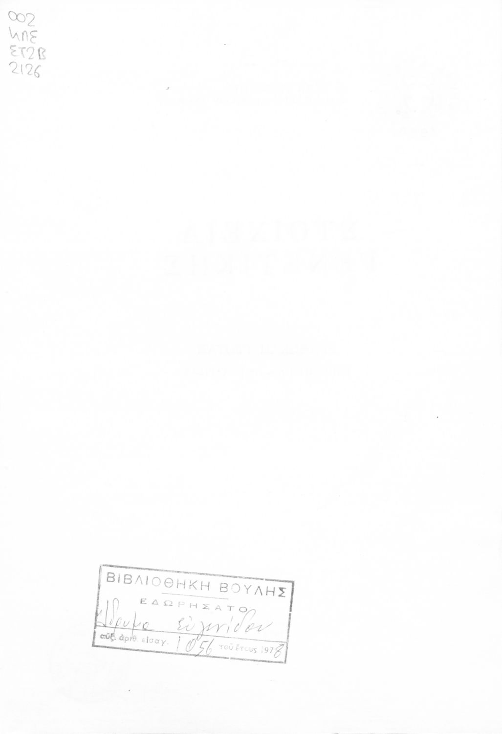 Εκδότης: Ίδρυμα Ευγενίδου Έτος έκδοσης: 1978 Τόπος έκδοσης: Αθήνα Έτος έγκρισης: 1978 |