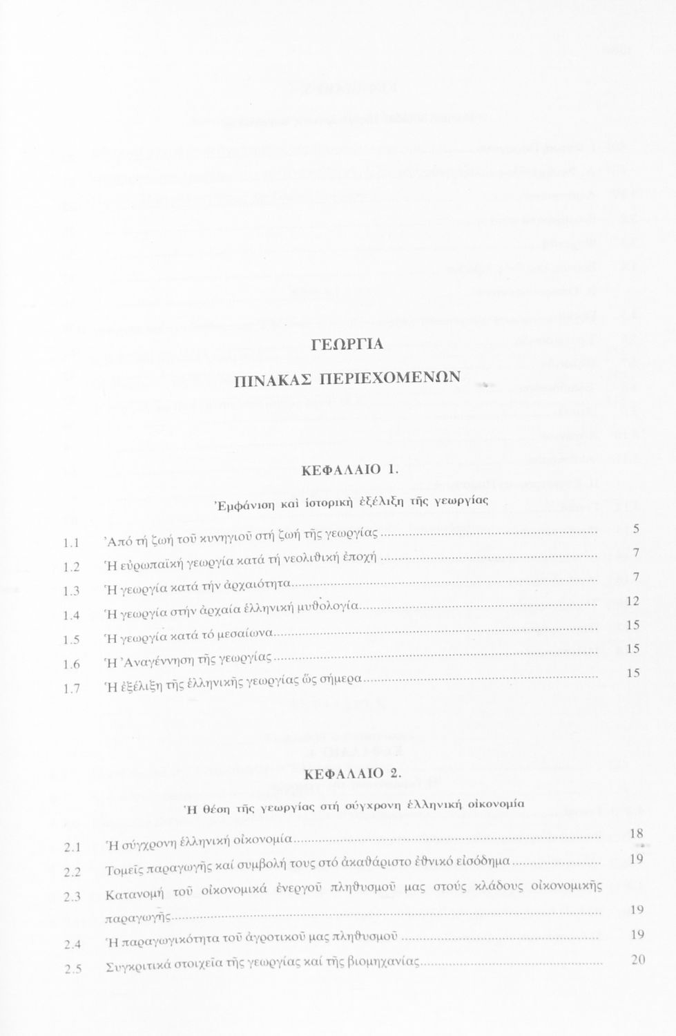 Σχολικό εγχειρίδιο Α΄ Τεχνικού και Επαγγελματικού Λυκείου που εξετάζει τη το ρόλο της γεωργίας από την αρχαιότητα μέχρι και τις μέρες μας και παρουσιάζει το ρόλο της γεωργίας στη σύγχρονη ελληνική οικονομία. Περιέχει και τμήμα με πληροφορίες για τα γεωργικά επαγγέλματα και τους γεωργικούς συνεταιρισμούς της Ελλάδας.
