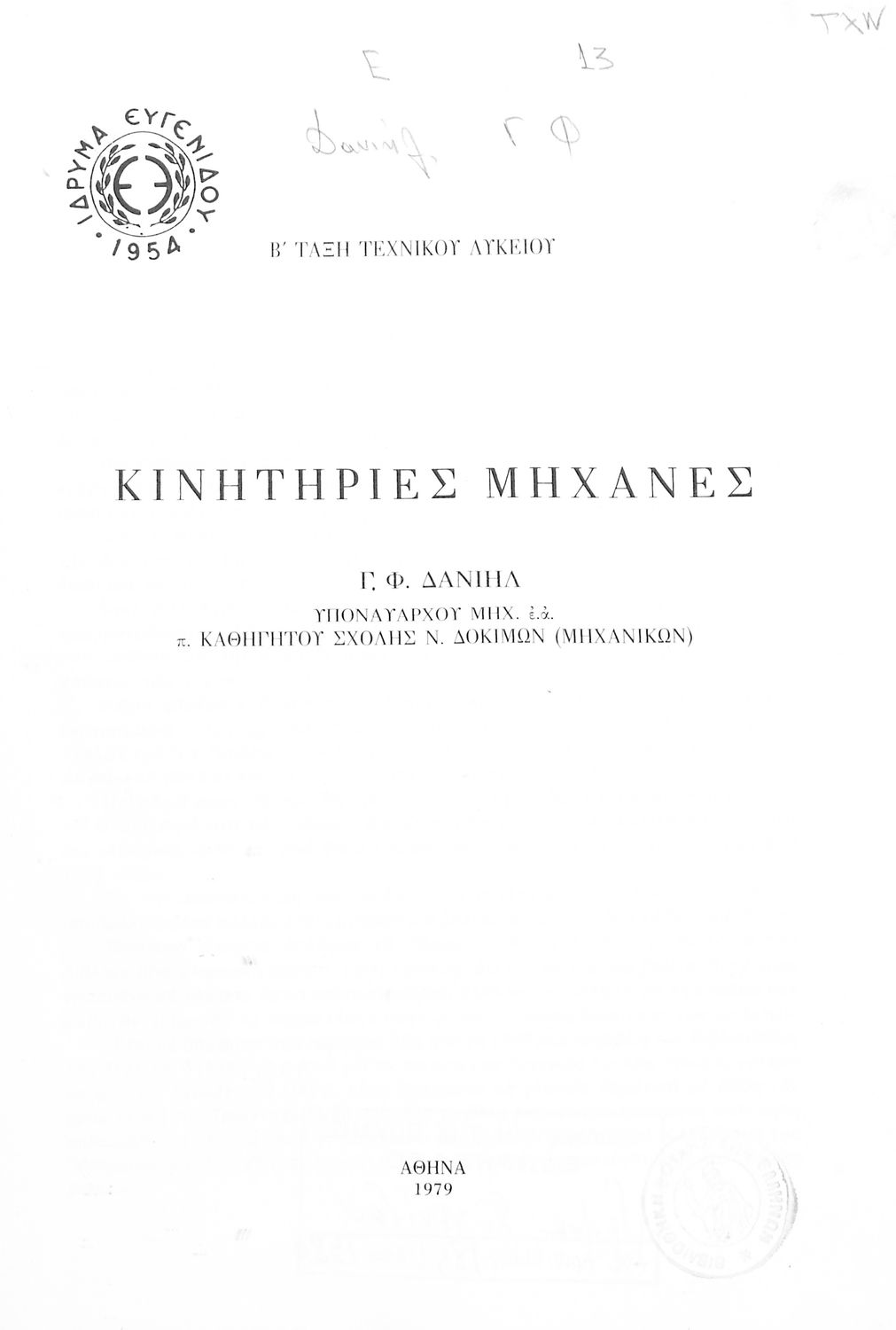 Κωδικός αναγνώρισης: 03-20558240 Τίτλος: Κινητήριες Μηχανές Β' τάξη Τεχνικού Λυκείου Συγγραφέας: Γ. Φ. Δανιήλ Μέγεθος και υπόστρωμα: Σχολικό εγχειρίδιο, μαλακό εξώφυλλο, 276 σελίδες. Εικόνες, σκίτσα ασπρόμαυρα. |