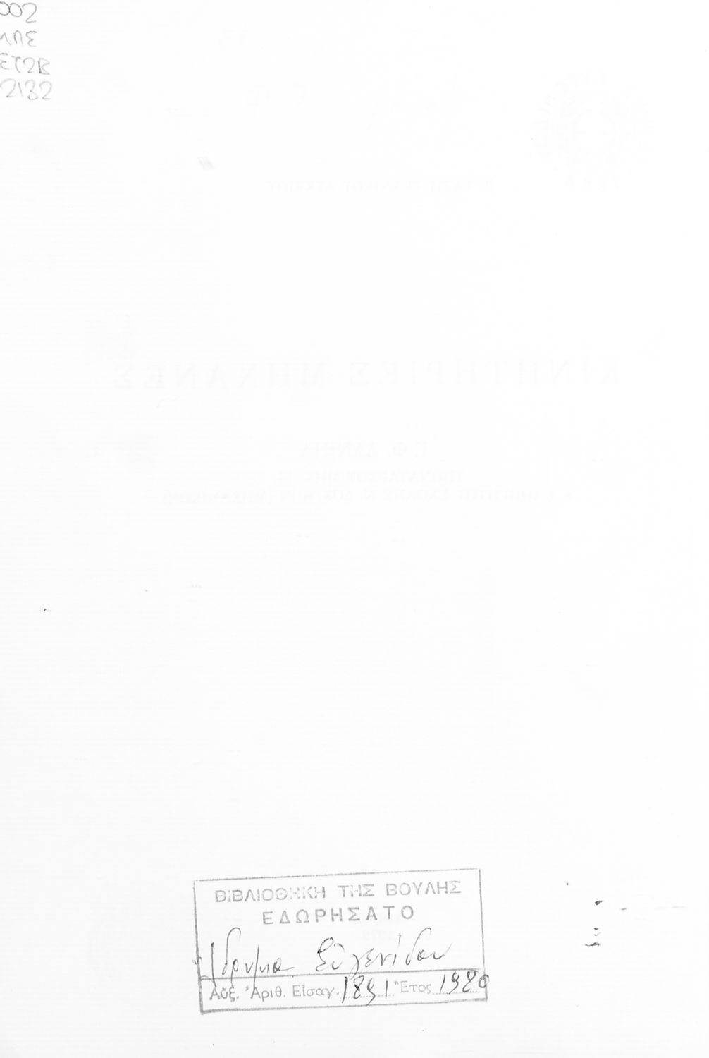 Εντοπισμός πρωτοτύπου: Βιβλιοθήκη της Βουλής των Ελλήνων Κωδικός βιβλιοθήκης: 20558240 |