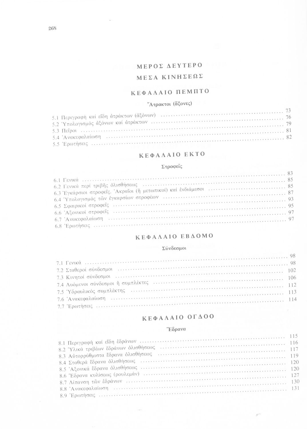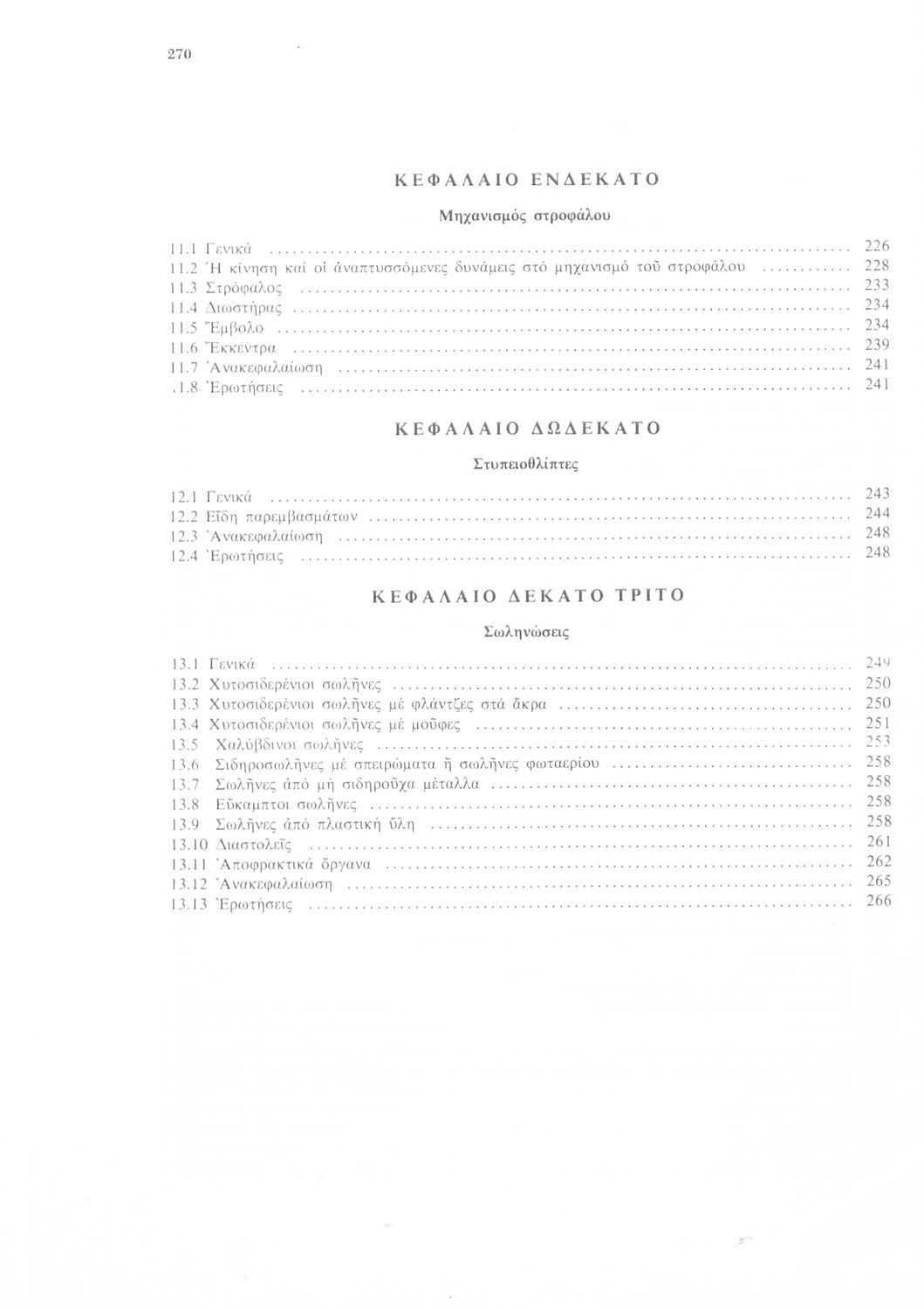 Σχολικό εγχειρίδιο Μηχανικής για τους μαθητές της Β' τάξης των Μέσων Τεχνικών Επαγγελματικών Σχολών. Σκοπός του βιβλίου είναι να προσφέρει στους σπουδαστές τη γνώση των διαφόρων μηχανών και να τους κατατοπίσει σχετικά με τη λειτουργία κάθε στοιχείου. Αναφέρεται στον τρόπο συντήρησης και επισκευής των μηχανών μέσα από την παράθεση εικόνων και πινάκων με τεχνικά δεδομένα.