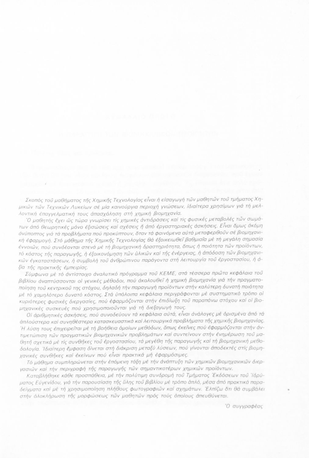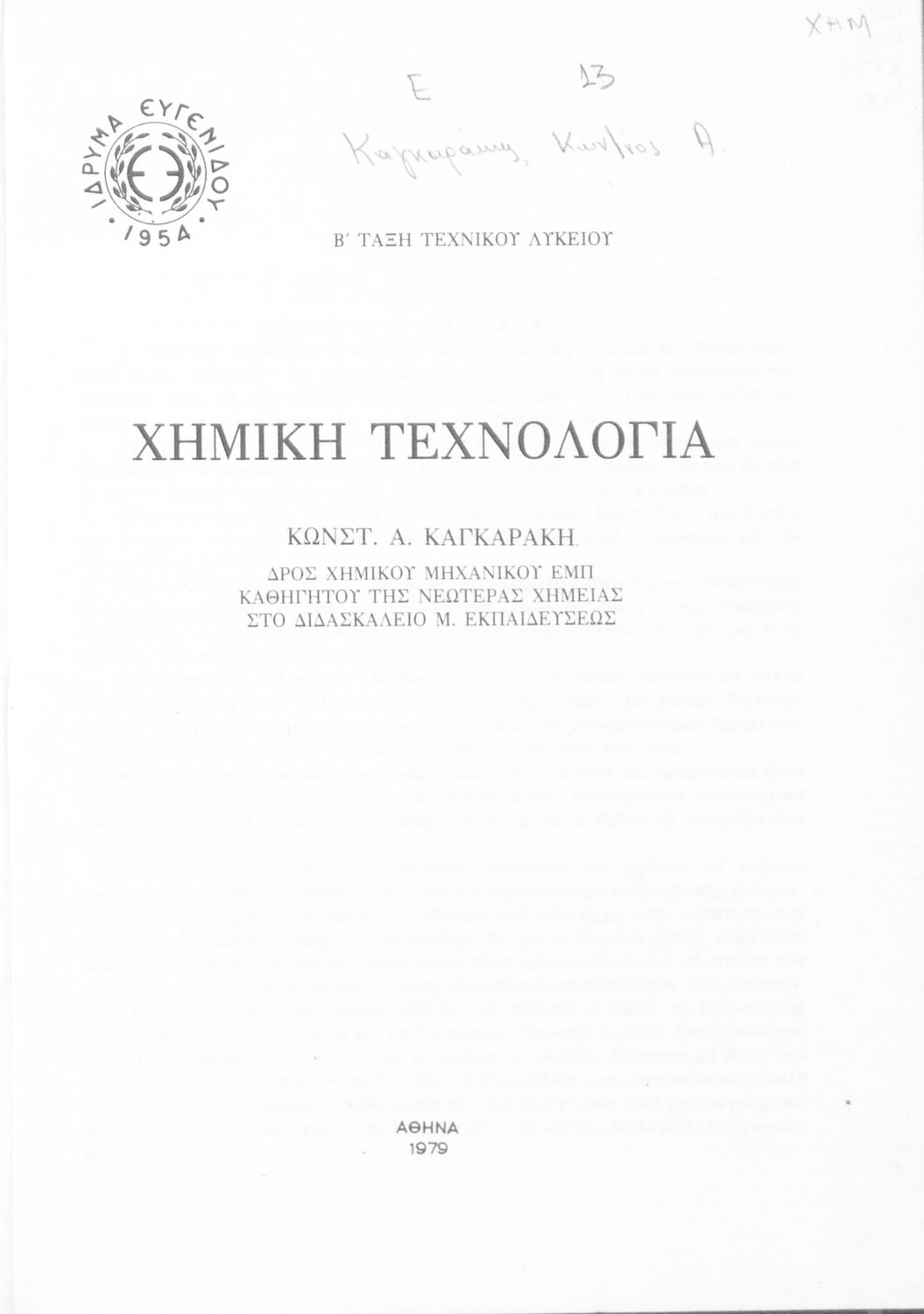 Σχολικό εγχειρίδιο Χημικής Τεχνολογίας Β΄ Τεχνικού Λυκείου που εισάγει τους μαθητές στην βιομηχανική εφαρμογή των χημικών αντιδράσεων και των φυσικών μεταβολών των σωμάτων. Ασχολείται με την ποιότητα των προϊόντων, το κόστος της παραγωγής και την εξοικονόμηση υλικών και ενέργειας.