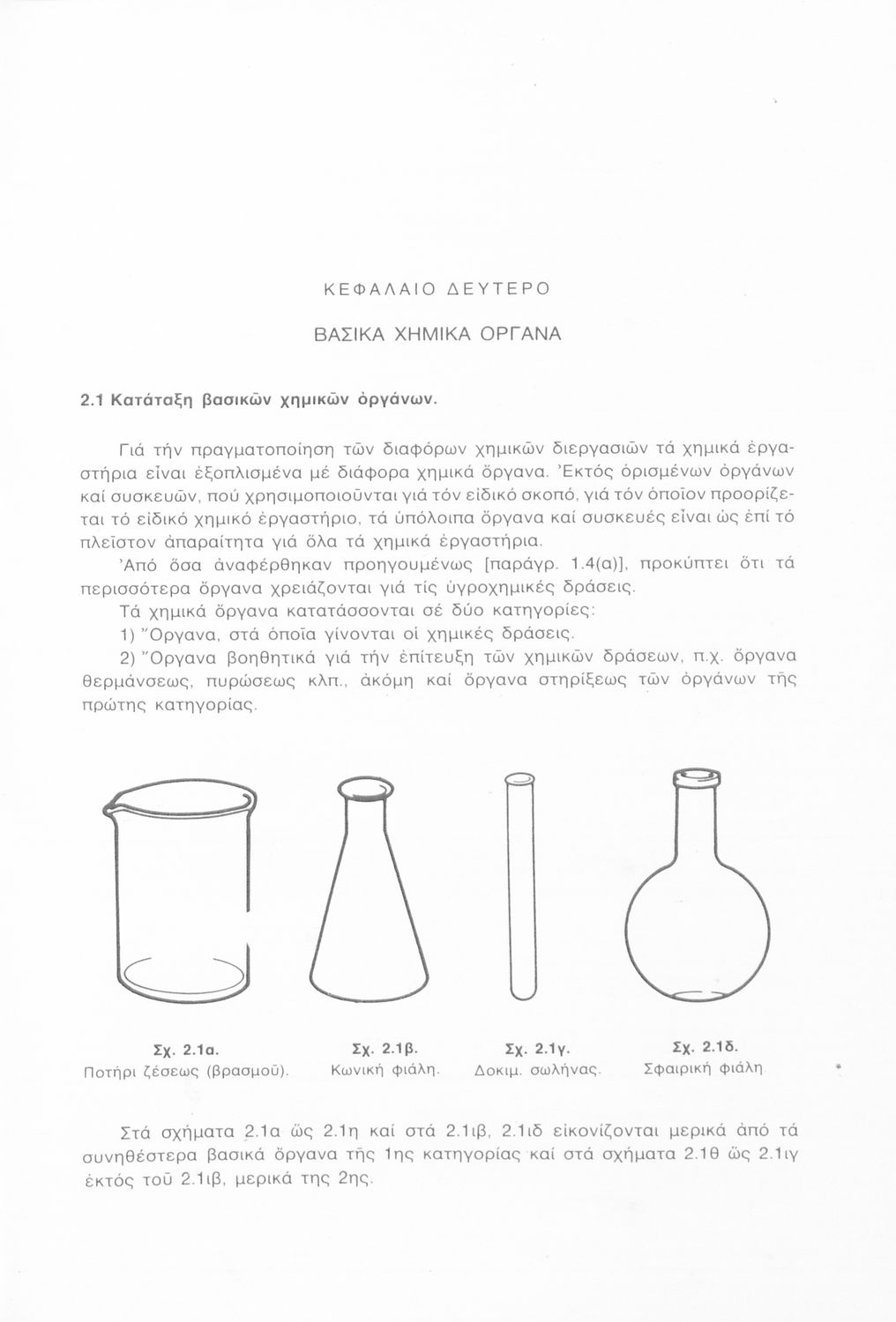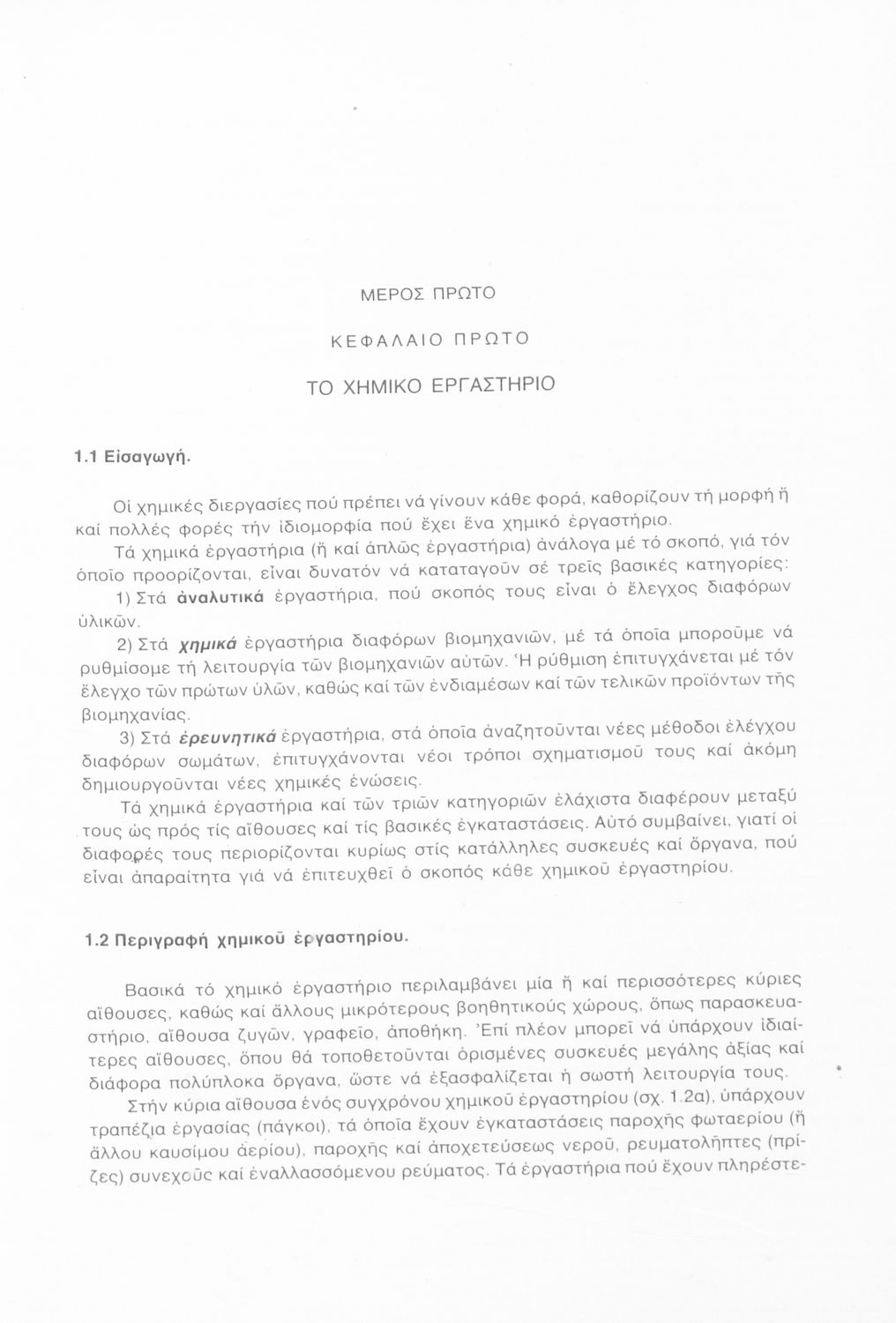 Σχολικό εγχειρίδιο Χημείας Β΄ Μέσων Τεχνικών και Επαγγελματικών Σχολών που αναφέρεται στα είδη, δομή και λειτουργία των εργαστηρίων Χημείας τα οποία διαχωρίζει σε αναλυτικά, χημικά και ερευνητικά.