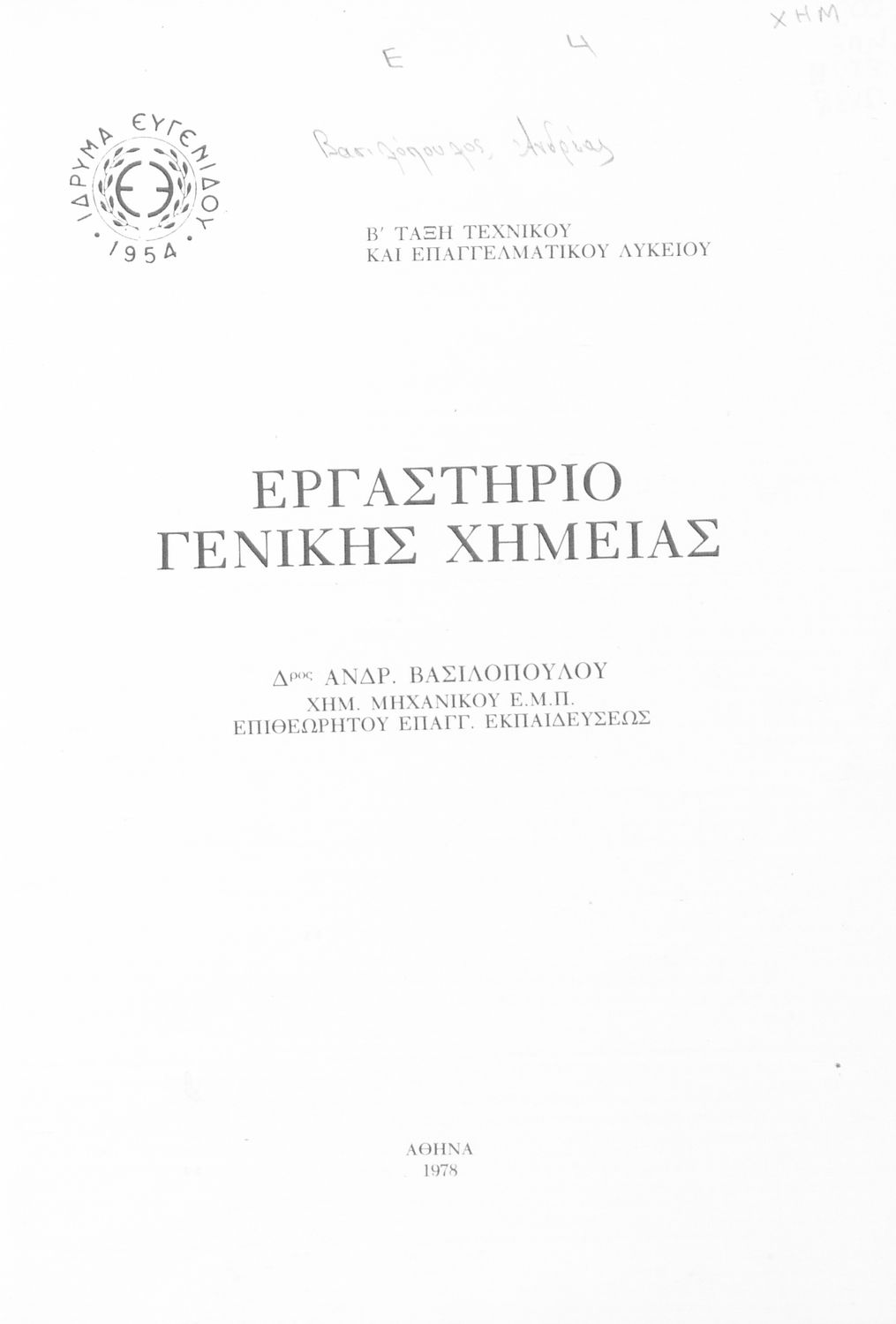 Τίτλος: Εργαστήριο Γενικής Χημείας Β' τάξη Τεχνικού και Επαγγελματικού Λυκείου