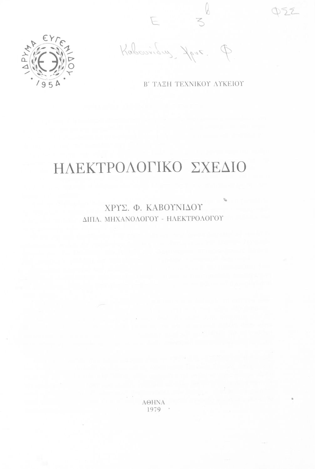 Σχολικό εγχειρίδιο Ηλεκτρολογικού Σχεδίου Β' Τεχνικού Λυκείου που αποτελεί εισαγωγή στο τεχνικό και ηλεκτρολογικό σχέδιο και παρουσιάζει τη σύνθεση και διάταξη των διαφόρων ηλεκτρικών κυκλωμάτων.