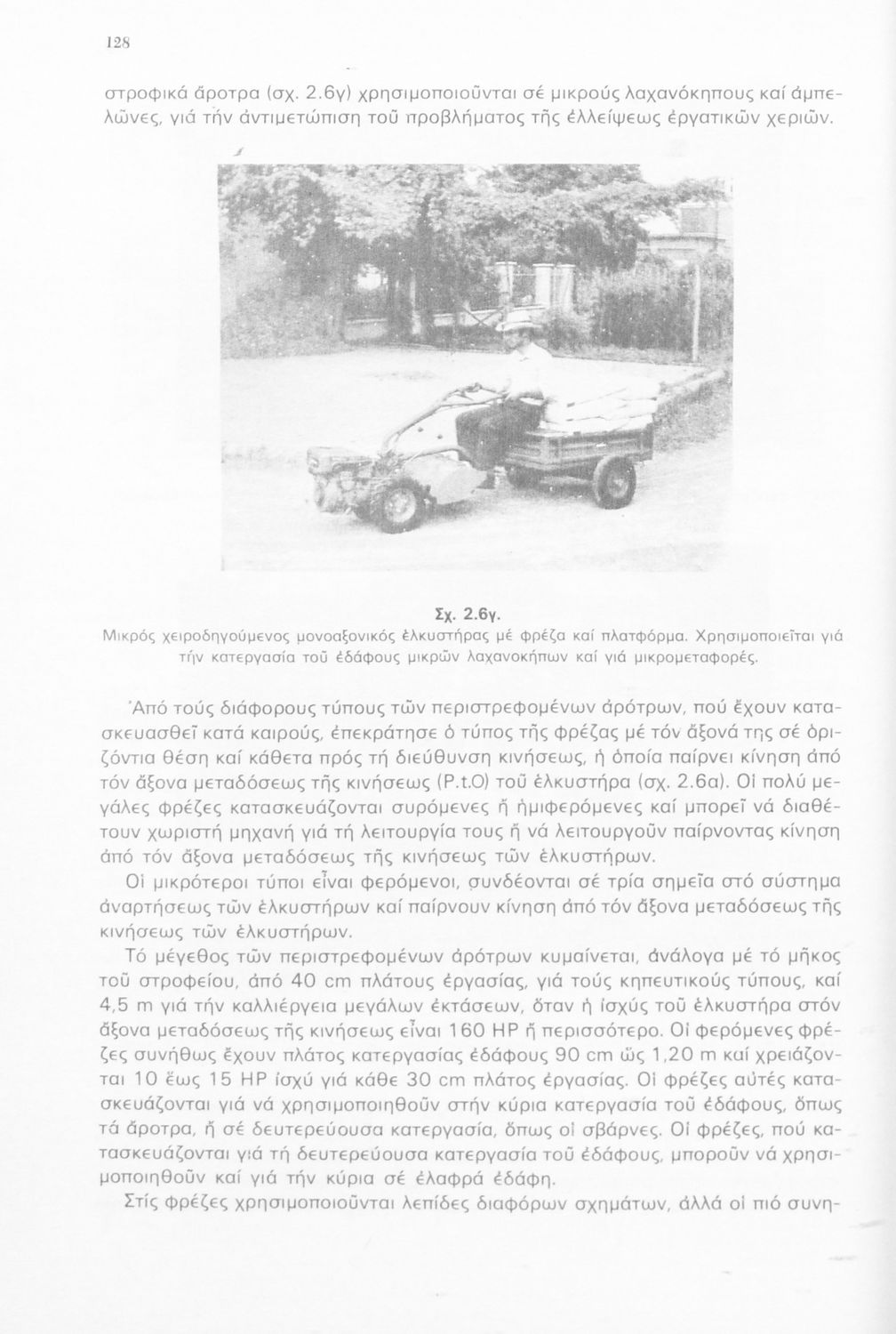 Σχολικό εγχειρίδιο Μηχανικής για τους μαθητές της Γ' τάξης των Μέσων Τεχνικών Επαγγελματικών Σχολών που παρουσιάζει τα γεωργικά μηχανήματα που χρησιμοποιούνται για την περιποίηση των καλλιεργούμενων φυτών, ...