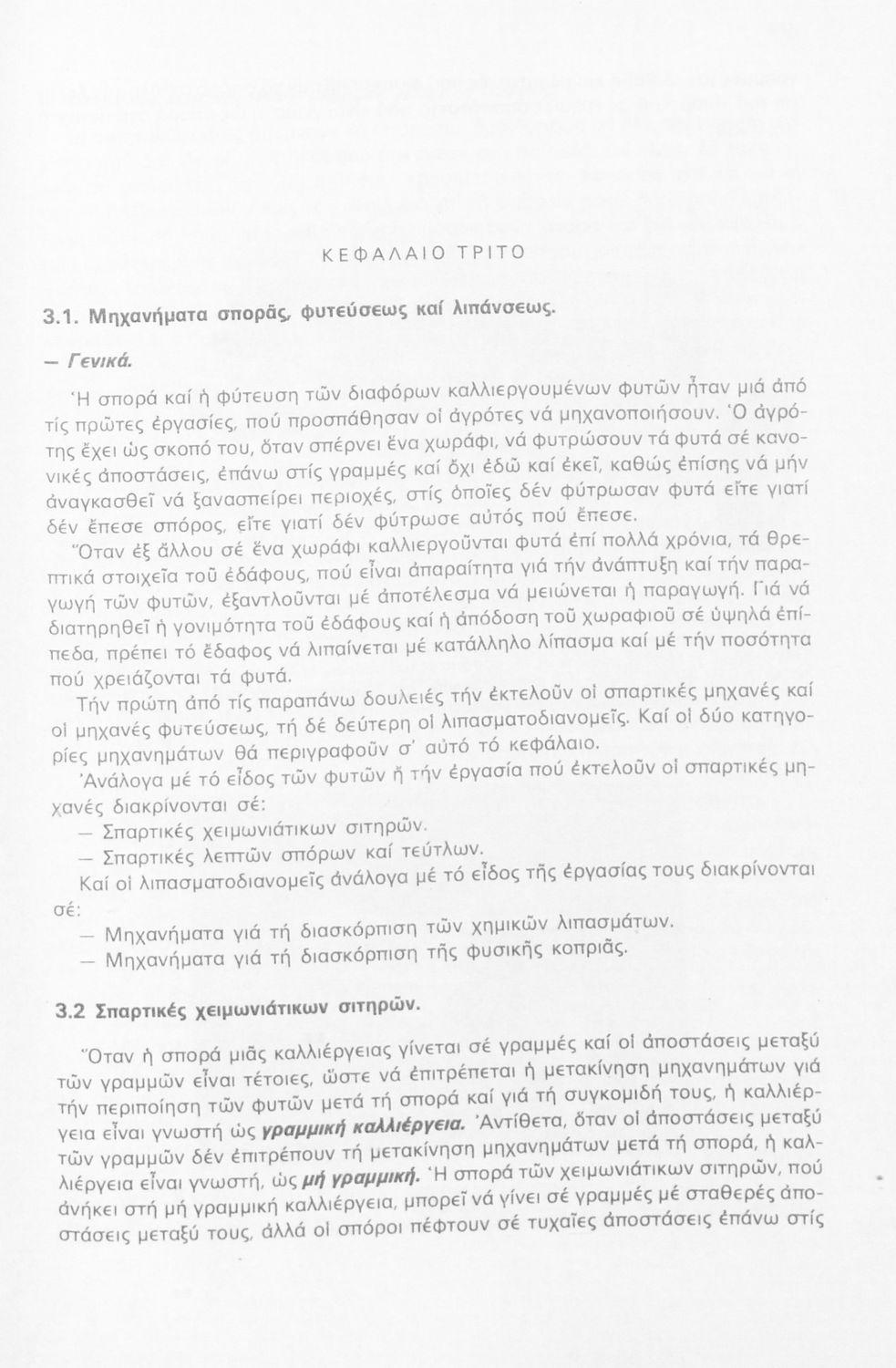Σχολικό εγχειρίδιο Μηχανικής για τους μαθητές της Γ' τάξης των Μέσων Τεχνικών Επαγγελματικών Σχολών που παρουσιάζει τα γεωργικά μηχανήματα που χρησιμοποιούνται για την περιποίηση των καλλιεργούμενων φυτών, ...