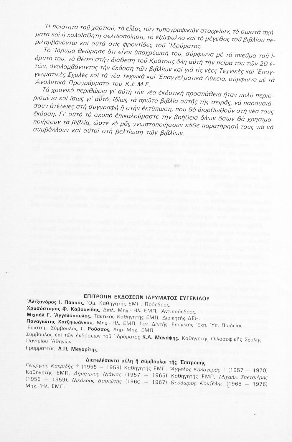 Σχολικό εγχειρίδιο Γεωμετρίας για τις Α΄, Β΄ και Γ΄ Λυκείου που περιλαμβάνει θεωρία και ασκήσεις και είναι χωρισμένο σε Επιπεδομετρία και Στερεομετρία.