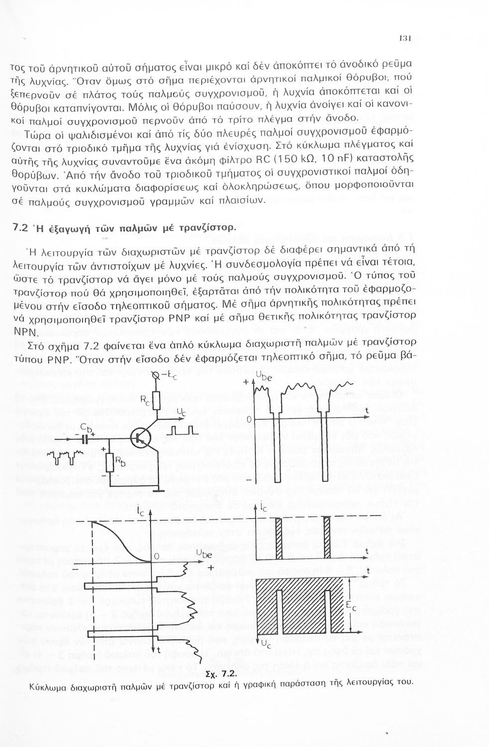 Μαθητικό βοήθημα της Γ ' τάξης Μέσων Τεχνικών και Επαγγελματικών Σχολών το οποίο αναφέρεται στις βασικές φυσικές αρχές της τηλεοπτικής τεχνικής. Στο βιβλίο περιγράφονται τα βασικά κυκλώματα και ποικίλες άλλες συνδεσμολογίες βαθμίδων του δέκτη τηλεοράσεως με λυχνίες και τρανζίστορ.