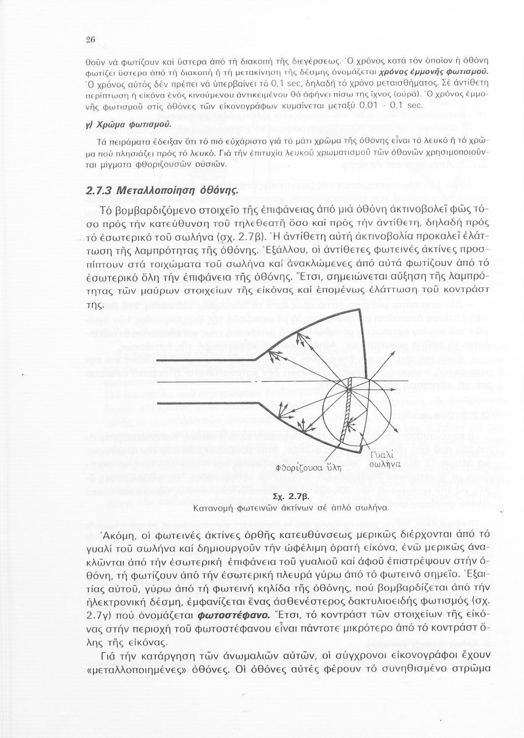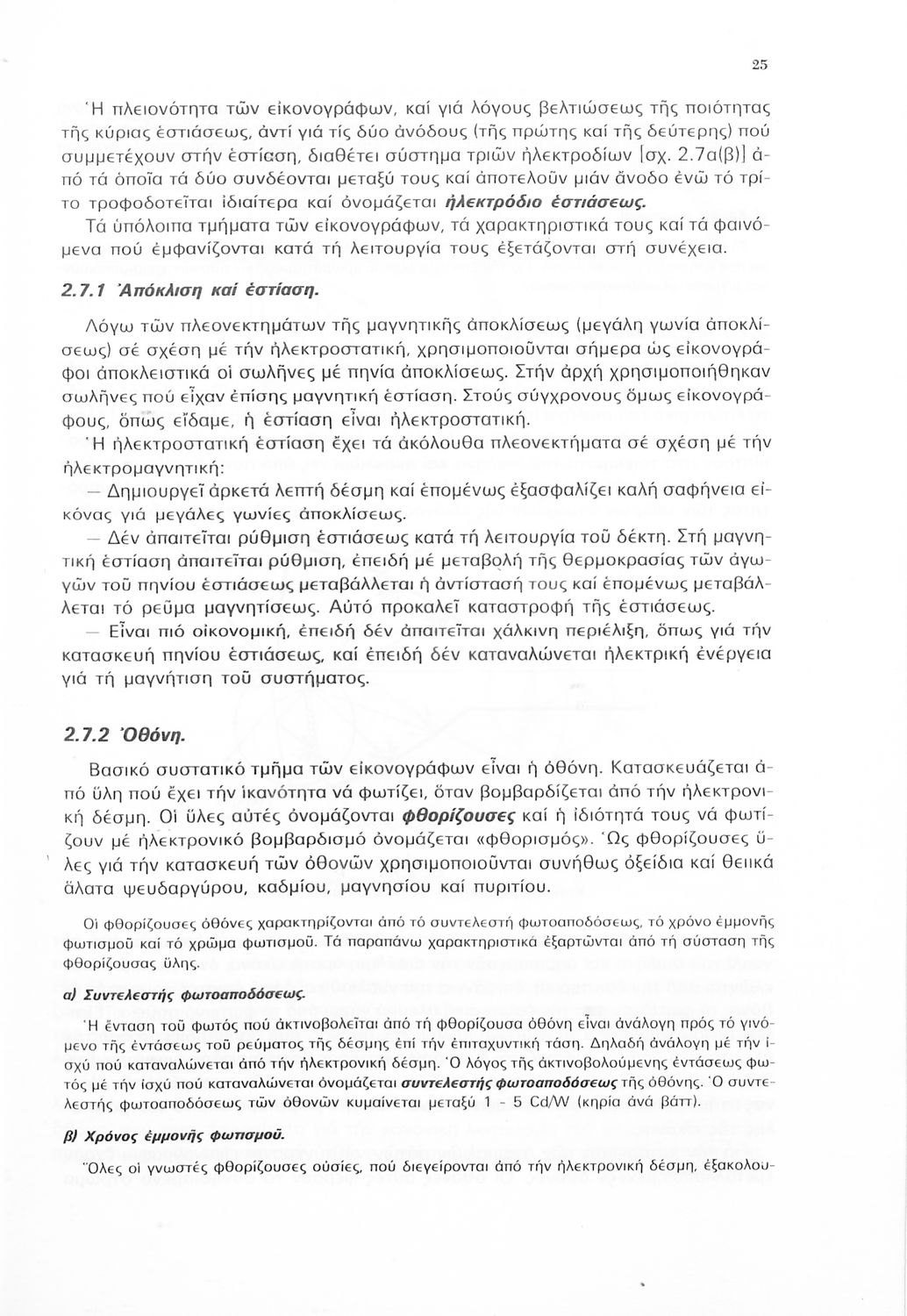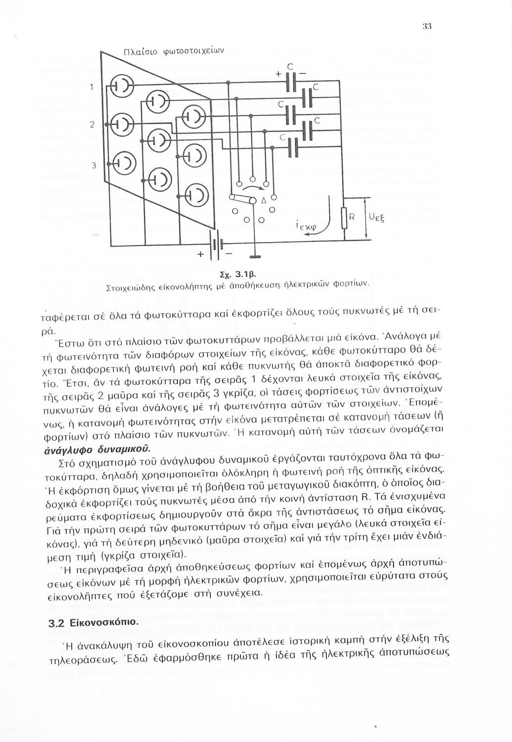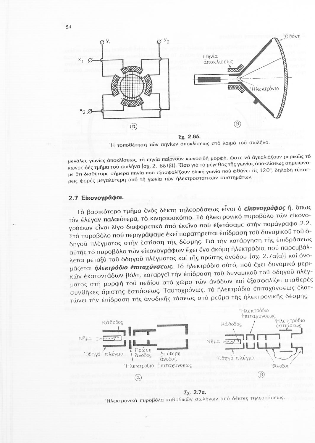 Μαθητικό βοήθημα της Γ ' τάξης Μέσων Τεχνικών και Επαγγελματικών Σχολών το οποίο αναφέρεται στις βασικές φυσικές αρχές της τηλεοπτικής τεχνικής. Στο βιβλίο περιγράφονται τα βασικά κυκλώματα και ποικίλες άλλες συνδεσμολογίες βαθμίδων του δέκτη τηλεοράσεως με λυχνίες και τρανζίστορ.