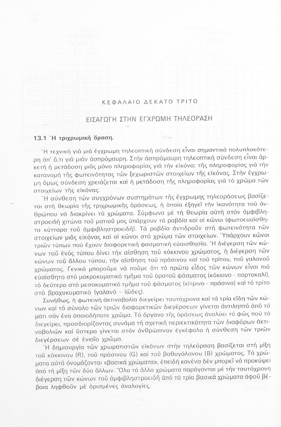 Παρουσίαση περιεχομένου: Μαθητικό βοήθημα της Γ ' τάξης Μέσων Τεχνικών και Επαγγελματικών Σχολών το οποίο αναφέρεται στις βασικές φυσικές αρχές της τηλεοπτικής τεχνικής. Στο βιβλίο περιγράφονται τα βασικά κυκλώματα και ποικίλες άλλες συνδεσμολογίες βαθμίδων του δέκτη τηλεοράσεως με λυχνίες και τρανζίστορ.