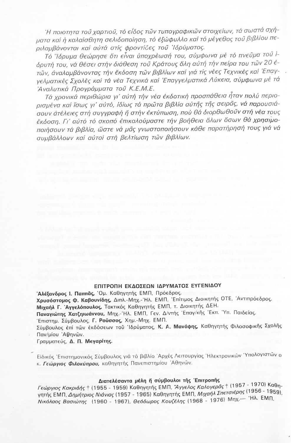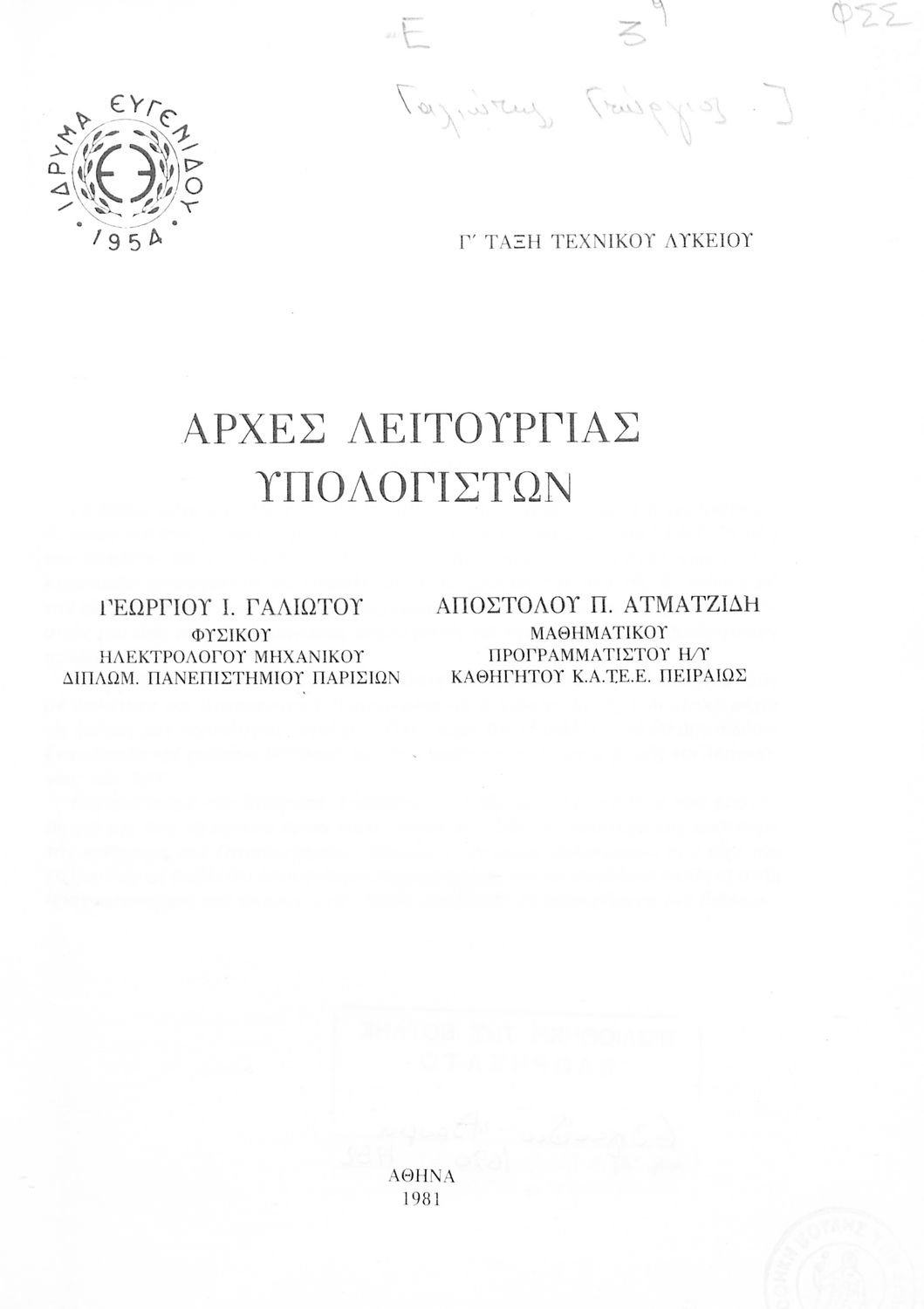 Βαθμίδα εκπαίδευσης: Δευτεροβάθμια Τάξη: Γ' Μέσων Τεχνικών - Επαγγελματικών Σχολών Μάθημα: Πληροφορική Γλώσσα: Δημοτική Παρουσίαση περιεχομένου: Σχολικό εγχειρίδιο Επιστήμης Υπολογιστών Γ΄ Μέσων Τεχνικών και Επαγγελματικών Σχολών που περιλαμβάνει εισαγωγή στη δομή και λειτουργία των ψηφιακών και αναλογικών ηλεκτρονικών υπολογιστών. |