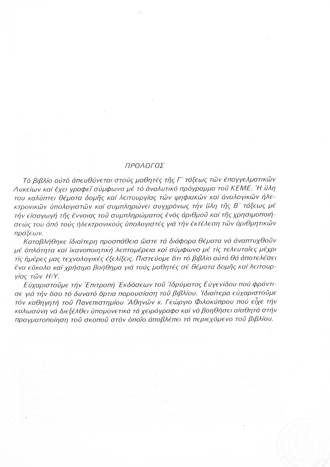 Σχολικό εγχειρίδιο Επιστήμης Υπολογιστών Γ΄ Μέσων Τεχνικών και Επαγγελματικών Σχολών που περιλαμβάνει εισαγωγή στη δομή και λειτουργία των ψηφιακών και αναλογικών ηλεκτρονικών υπολογιστών.