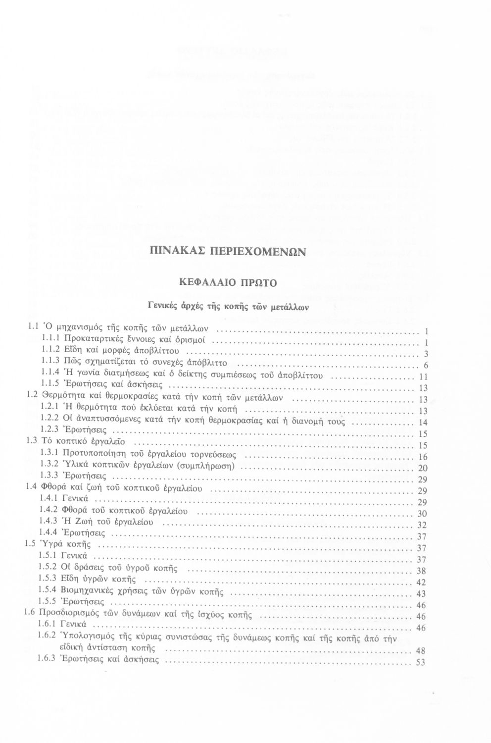 Σχολικό εγχειρίδιο Μηχανικής Γ' Τεχνικού Λυκείου. Παρουσιάζει την κατεργασία κοπής μετάλλου και των εργαλειομηχανών κοπής. Επίσης αναφέρεται στις μηχανουργικές μετρήσεις και τα μηχανουργικά υλικά, την οργάνωση και τη λειτουργία του μηχανουργείου. Μελετά επίσης τη δομή και συντήρηση των εργαλειομηχανών και την εκτέλεση των βασικών κατεργασιών κοπής όπως το τρυπάνισμα και το πλάνισμα.