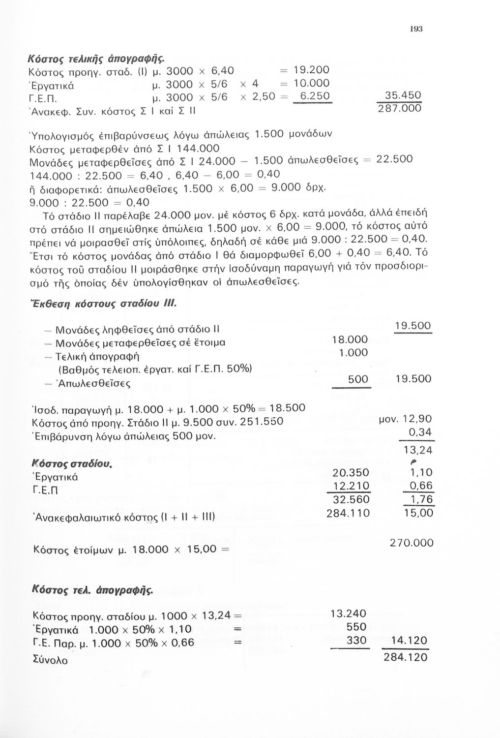 Λογισμός του Κόστος Βιομηχανική Λογιστική Γ' τάξη Επαγγελματικού Λυκείου