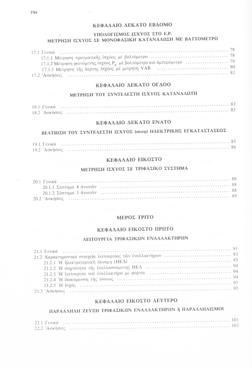 Παρουσίαση περιεχομένου: Σχολικό εγχειρίδιο Ηλεκτρολογίας της Γ' Τεχνικού Λυκείων που περιέχει ασκήσεις μέτρησης συνεχούς και εναλλασσόμενου ρεύματος και εσωτερικών ηλεκτρικών εγκαταστάσεων.