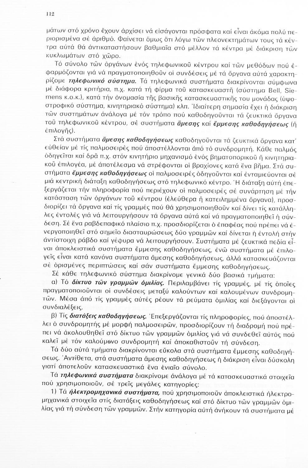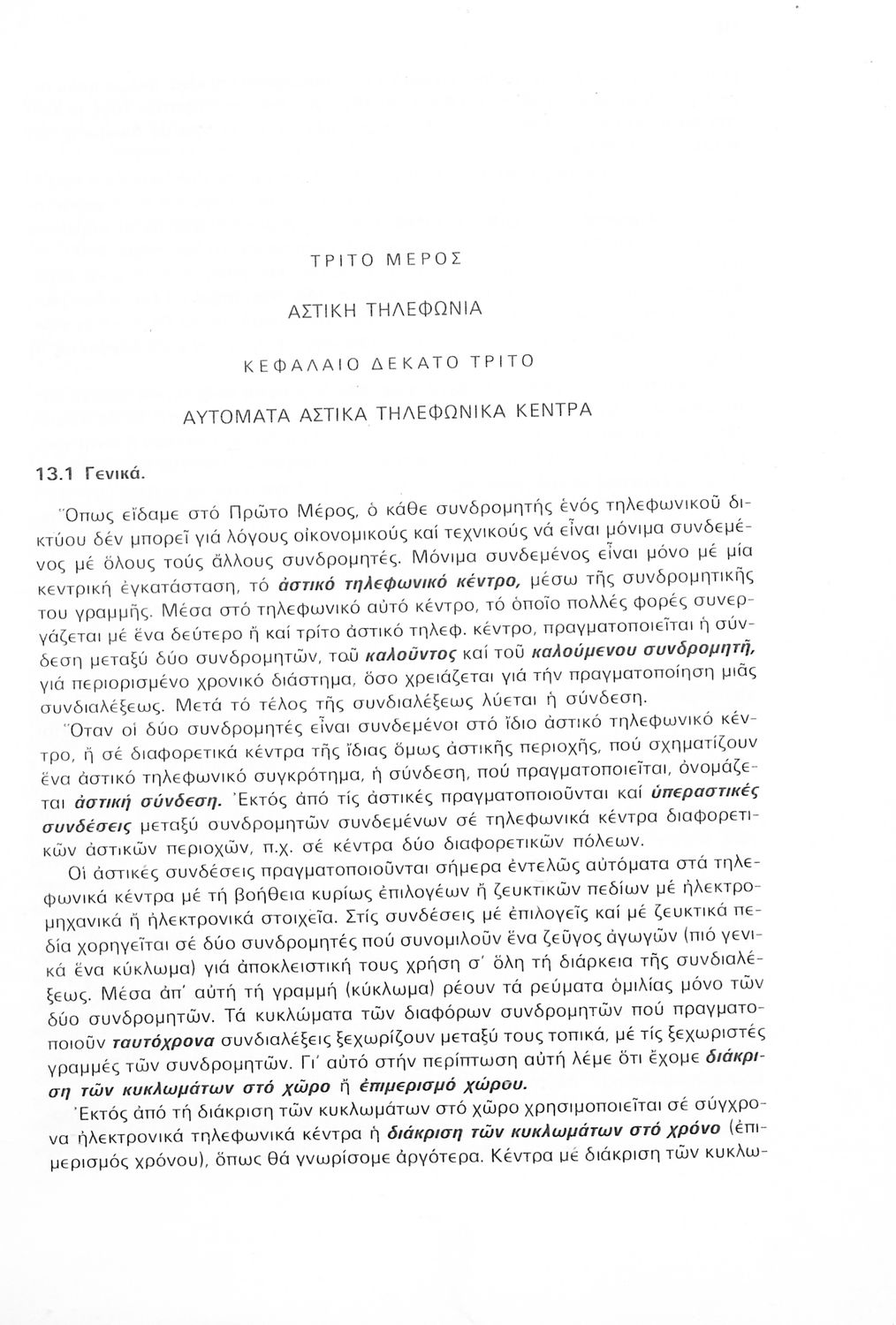 Μαθητικό βοήθημα Γ' Τεχνικού Λυκείου. Το βιβλίο εισάγει τους μαθητές στη γνώση της τεχνικής των τηλεφωνικών κέντρων. Ξεκινά με μια εισαγωγή στην τηλεπικοινωνία και συνεχίζει με τις βασικές κατασκευαστικές μονάδες, ενώ αναλύει τη δομή και τη λειτουργία των αστικών κέντρων και δικτύων.
