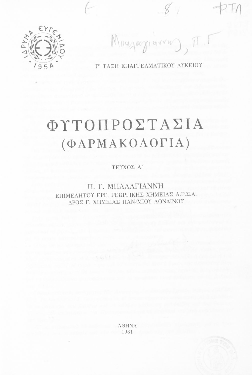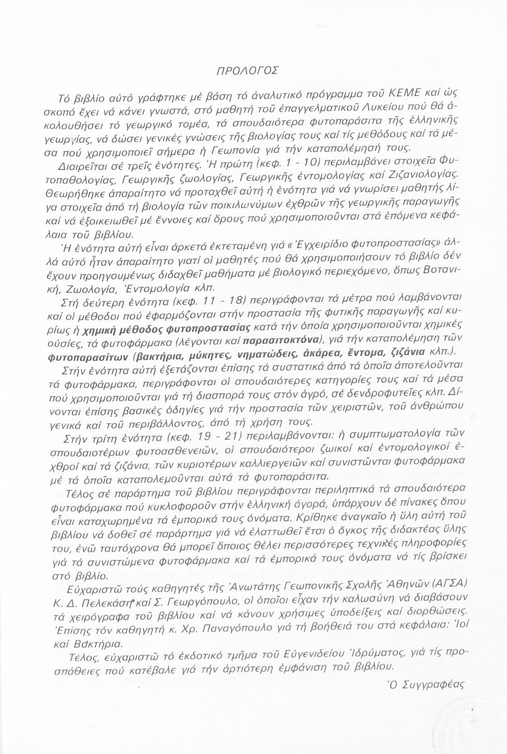 520 ## _aΣχολικό εγχειρίδιο Φαρμακολογίας Γ' Επαγγελματικού Λυκείου που περιλαμβάνει στοιχεία φυτοπαθολογίας, γεωργικής ζωολογίας και ζιζανολογίας.