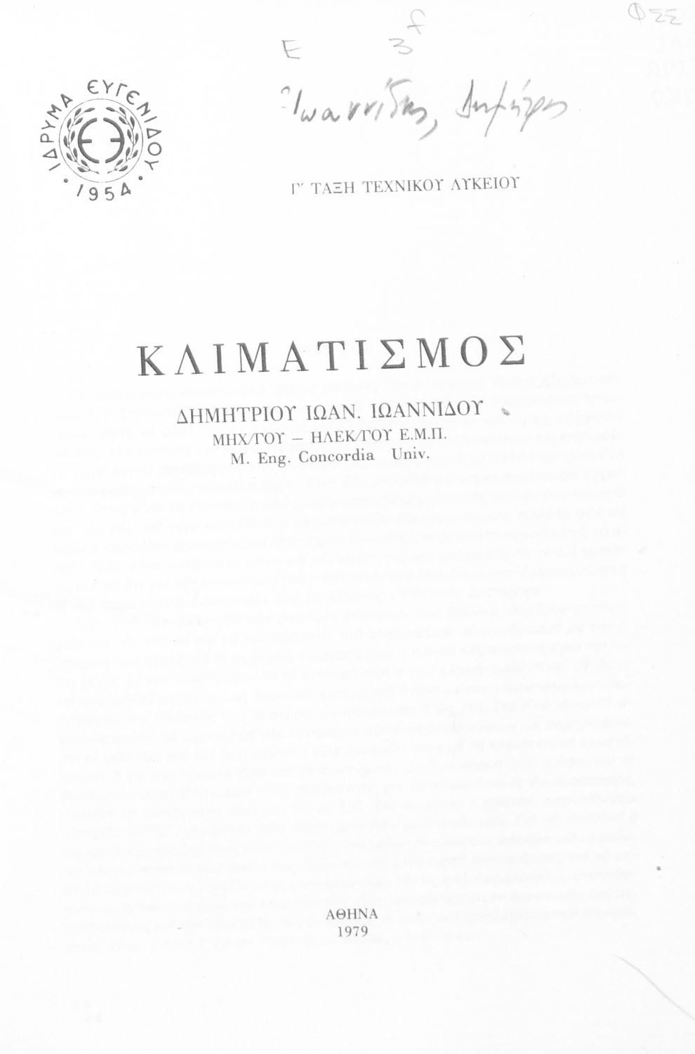 Βαθμίδα εκπαίδευσης: Δευτεροβάθμια Τάξη: Γ' Τεχνικού Λυκείου Μάθημα: Κλιματισμός Γλώσσα: Δημοτική Παρουσίαση περιεχομένου: Σχολικό εγχειρίδιο Γ' Τεχνικού Λυκείου που εστιάζει στη λειτουργία και συντήρηση κλιματιστικών εγκαταστάσεων. |