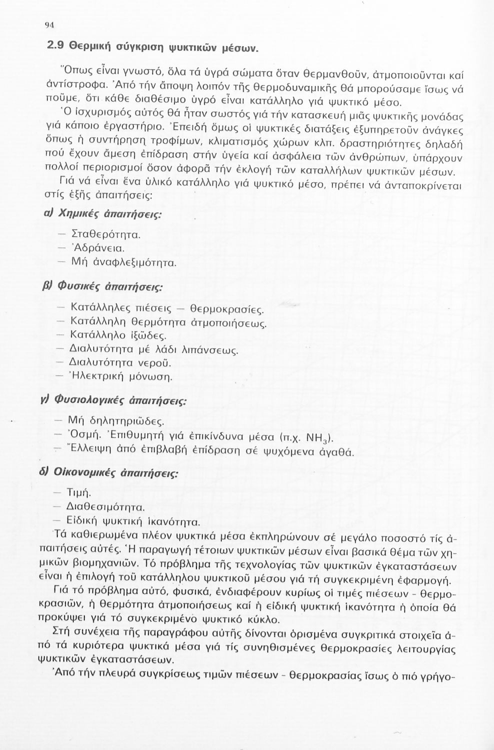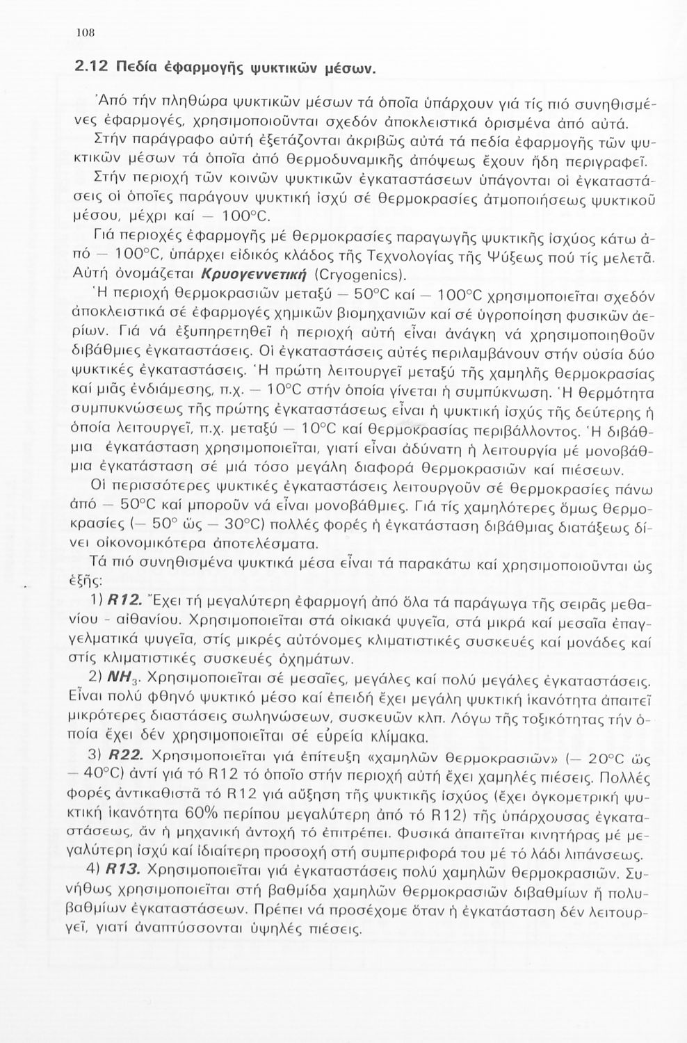 Σχολικό εγχειρίδιο Γ' Τεχνικού Λυκείου το οποίο ασχολείται με τη λειτουργία και τη σύνθεση των ψυκτικών διατάξεων. Χωρίζεται σε δύο μέρη. Το θεωρητικό κομμάτι το οποίο περιέχει ζητήματα θερμοδυναμικής, τη γνώση των ψυκτικών μέσων και τη μετάδοση θερμότητας. Το δεύτερο μέρος, περιέχει την τεχνολογική περιγραφή των κύριων τμημάτων των ψυκτικών διατάξεων.