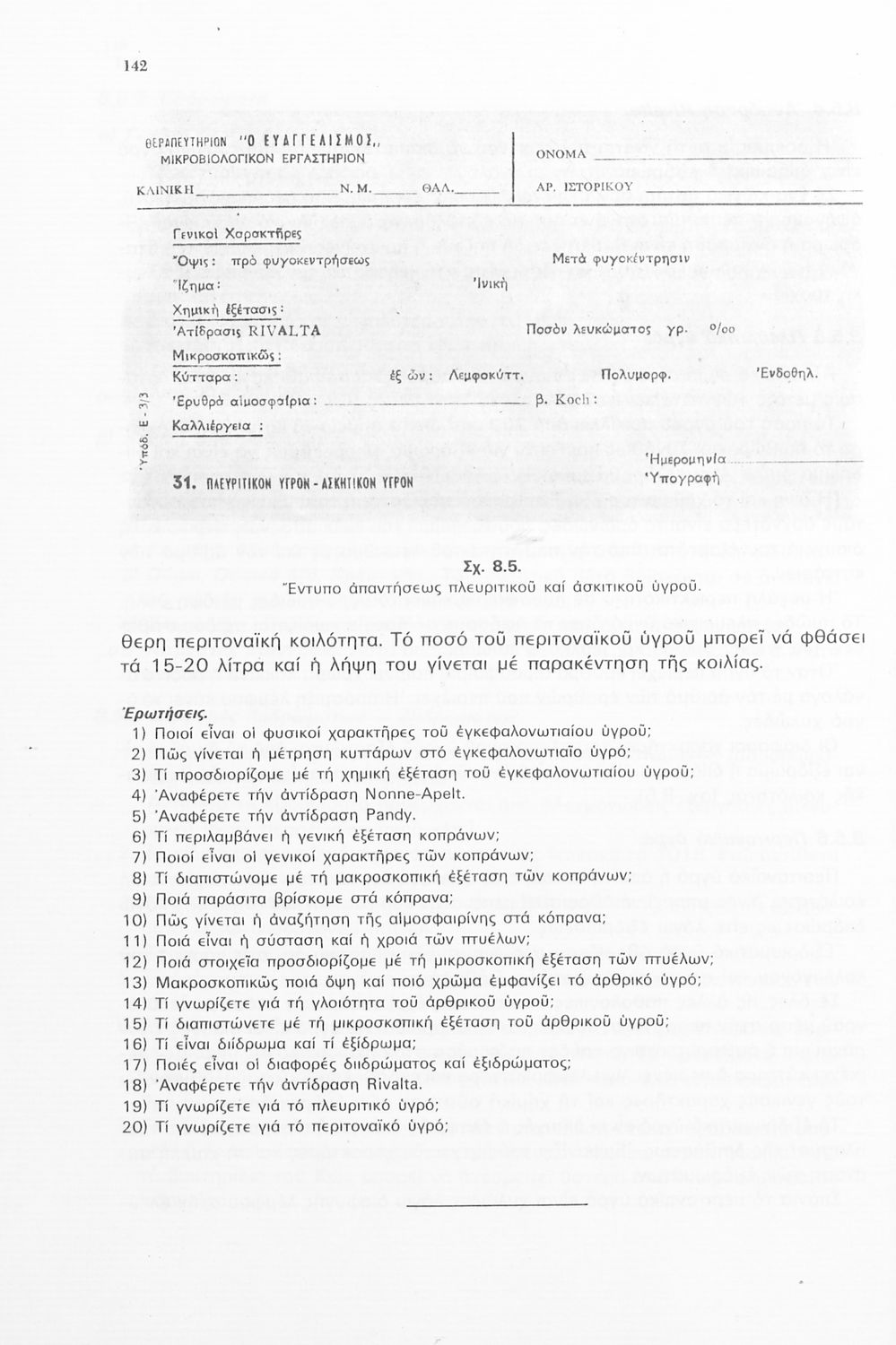 Βαθμίδα εκπαίδευσης: Δευτεροβάθμια Τάξη: Γ' Μέσων Τεχνικών - Επαγγελματικών Σχολών Μάθημα: Εργαστηριακή Εξέταση Γλώσσα: Δημοτική Παρουσίαση περιεχομένου: Σχολικό εγχειρίδιο Γ' Μέσων Τεχνικών και Επαγγελματικών Σχολών που παρουσιάζει τεχνικές εργαστηριακών εξετάσεων, τρόπους τήρησης των αρχείων, και εγγραφή αποτελεσμάτων στα ιατρικά και βιομηχανικά εργαστήρια. |