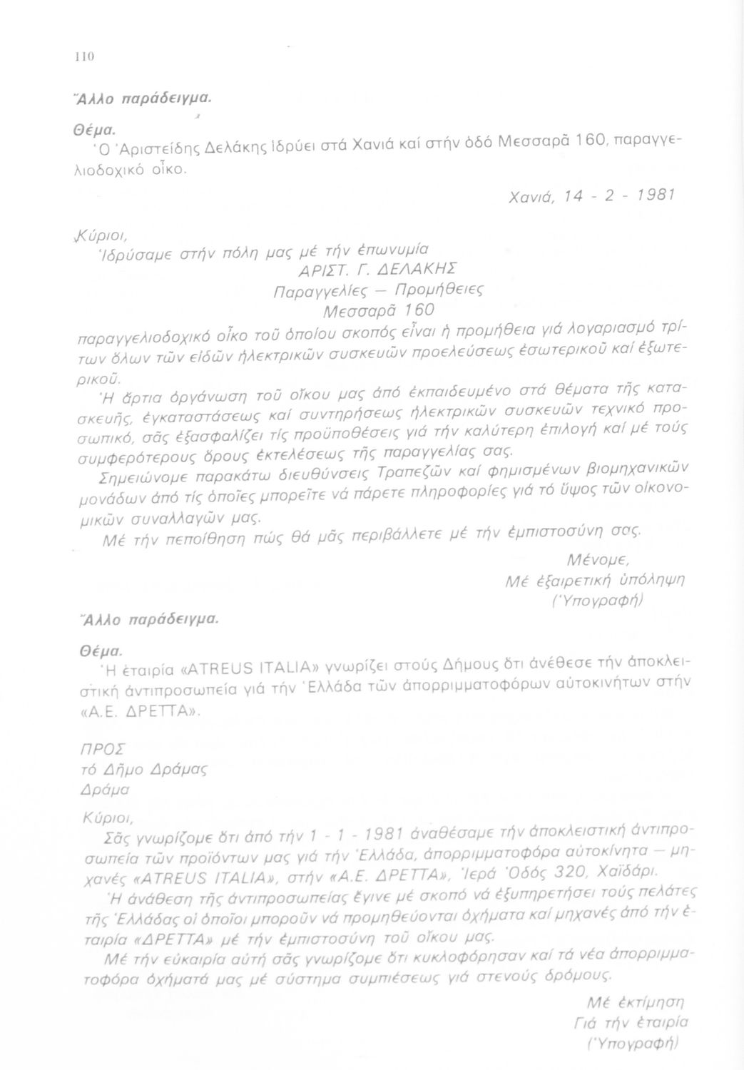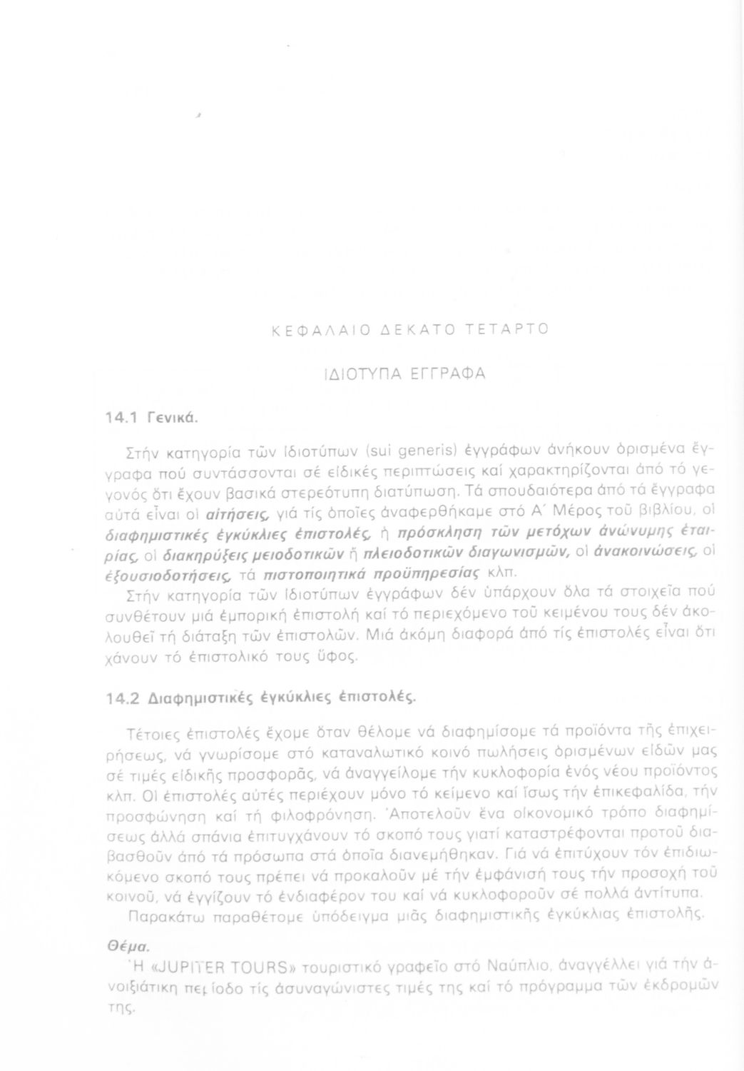 Σχολικό εγχειρίδιο Εμπορικής ΑλληλογραφίαςΓ' Επαγγελματικού Λυκείου που παρουσιάζει τα βασικά είδη εμπορικής αλληλογραφίας και περιλαμβάνει υποδείγματα και σχέδια επιστολών.