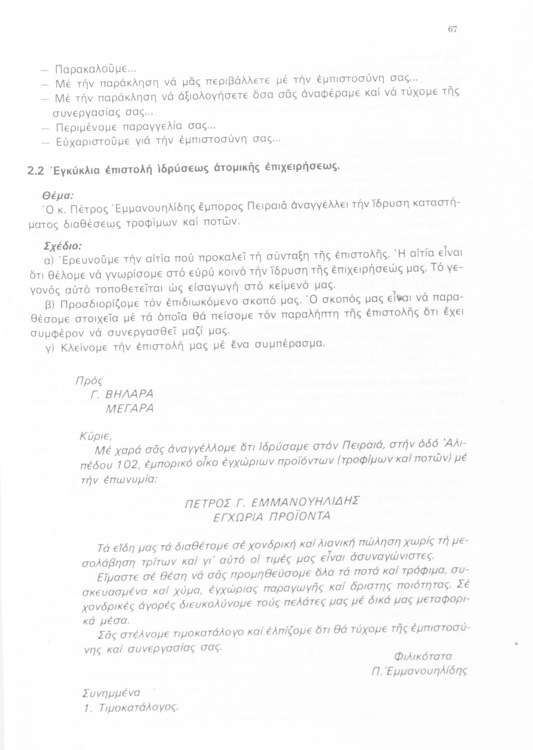 Μάθημα: Εμπορική Αλληλογραφία