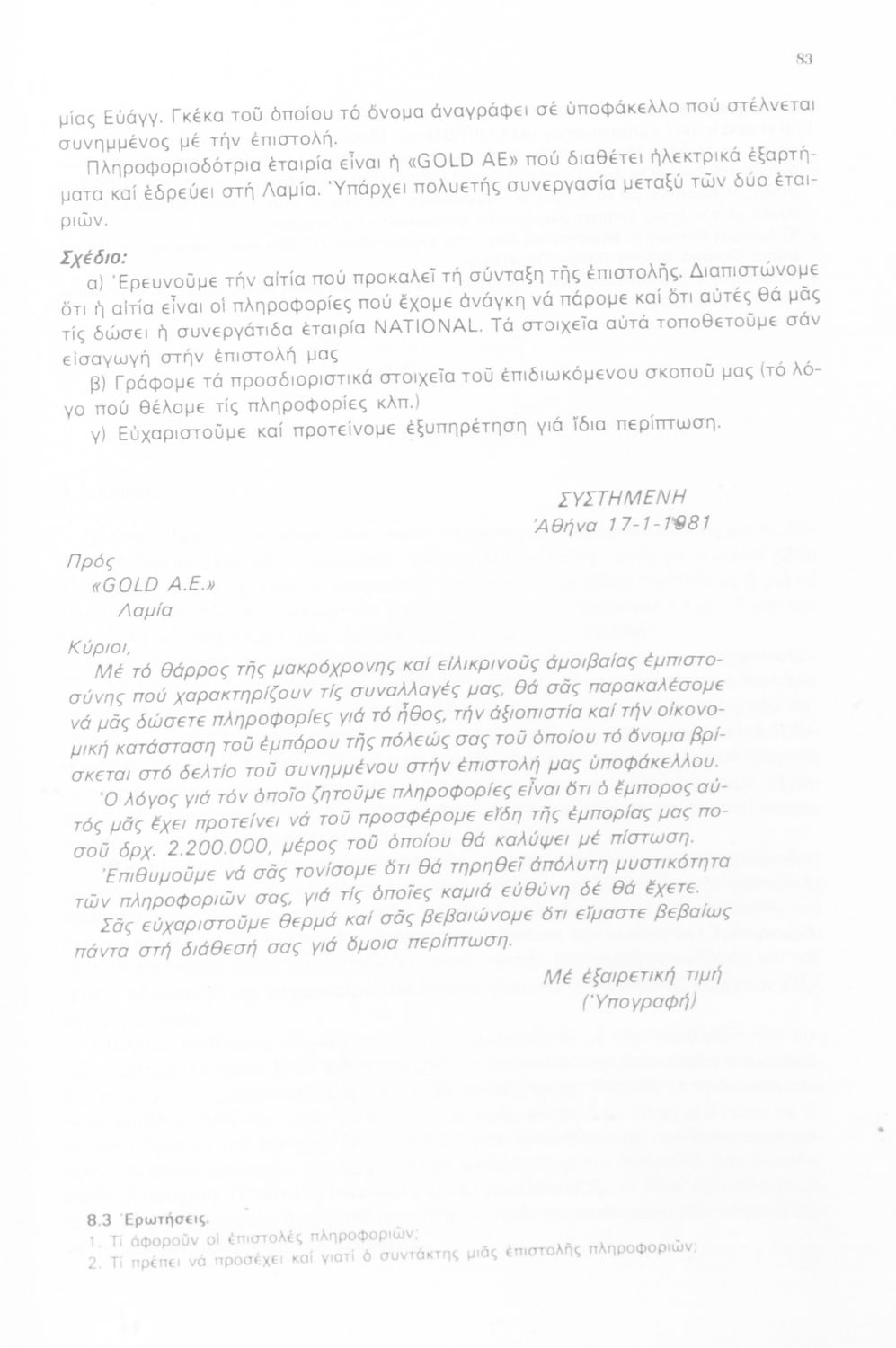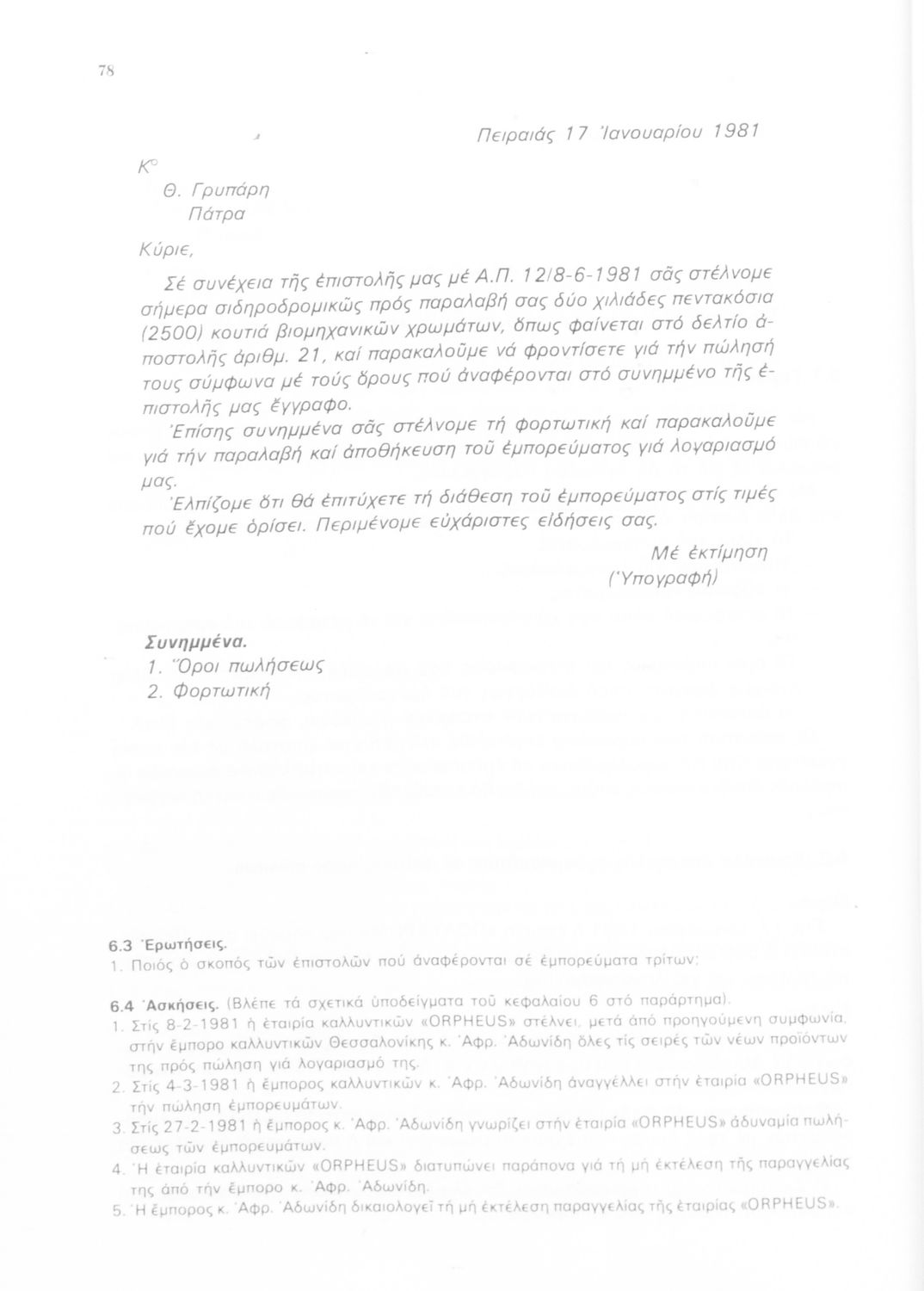 Σχολικό εγχειρίδιο Εμπορικής ΑλληλογραφίαςΓ' Επαγγελματικού Λυκείου που παρουσιάζει τα βασικά είδη εμπορικής αλληλογραφίας και περιλαμβάνει υποδείγματα και σχέδια επιστολών.
