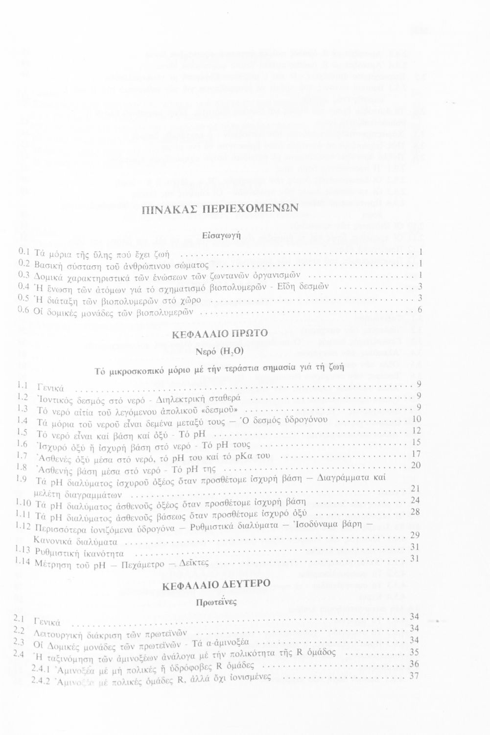 Σχολικό εγχειρίδιο Βιοχημείας της Γ' τάξης Μέσων Τεχνικών και Επαγγελματικών Σχολών το οποίο ασχολείται με τη δομή και τη λειτουργία της ύλης που έχει ζωή σε μοριακό επίπεδο εστιάζοντας στην ανάλυση του νερού.