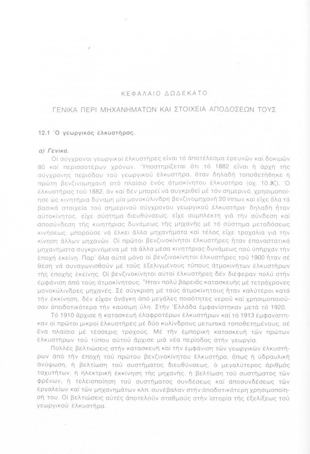 Σχολικό εγχειρίδιο για τους μαθητές της Α' τάξης των Μέσων Τεχνικών Επαγγελματικών Σχολών. Το βιβλίο ασχολείται με τις ιδιότητες του εδάφους, τη σύσταση, τις φυσικές και χημικές ιδιότητες τα επίπεδα υγρασίας, τη διάβρωση. Το δεύτερο μέρος, αναφέρεται στα γεωργικά μηχανήματα, τις λειτουργίες και τη συντήρησή τους.