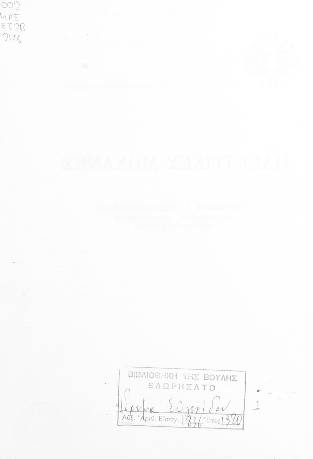 Εντοπισμός πρωτοτύπου: Βιβλιοθήκη της Βουλής των Ελλήνων Κωδικός βιβλιοθήκης: 20558284 |