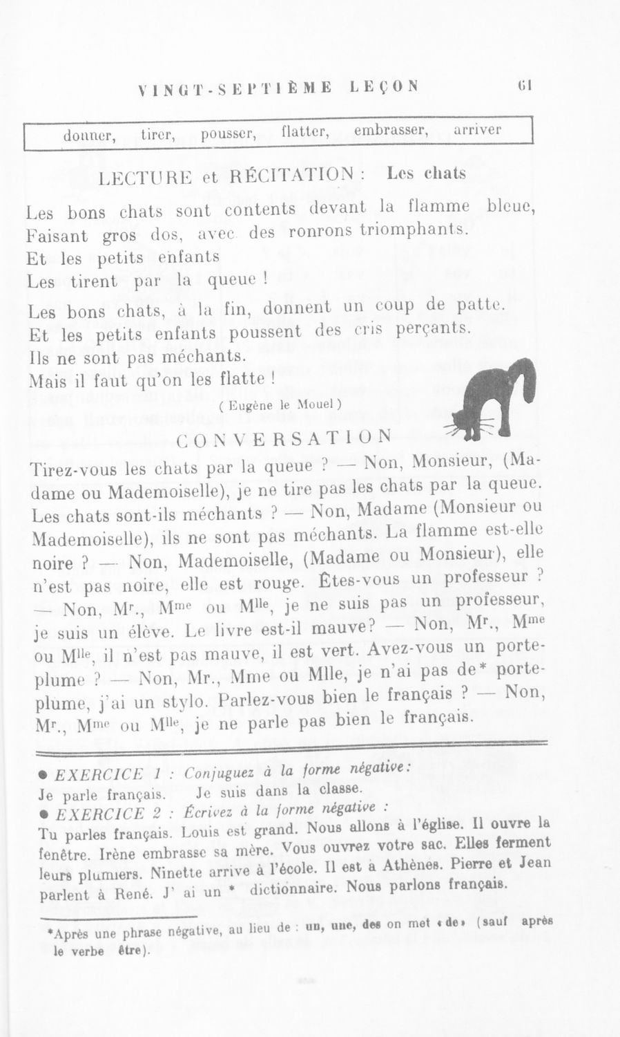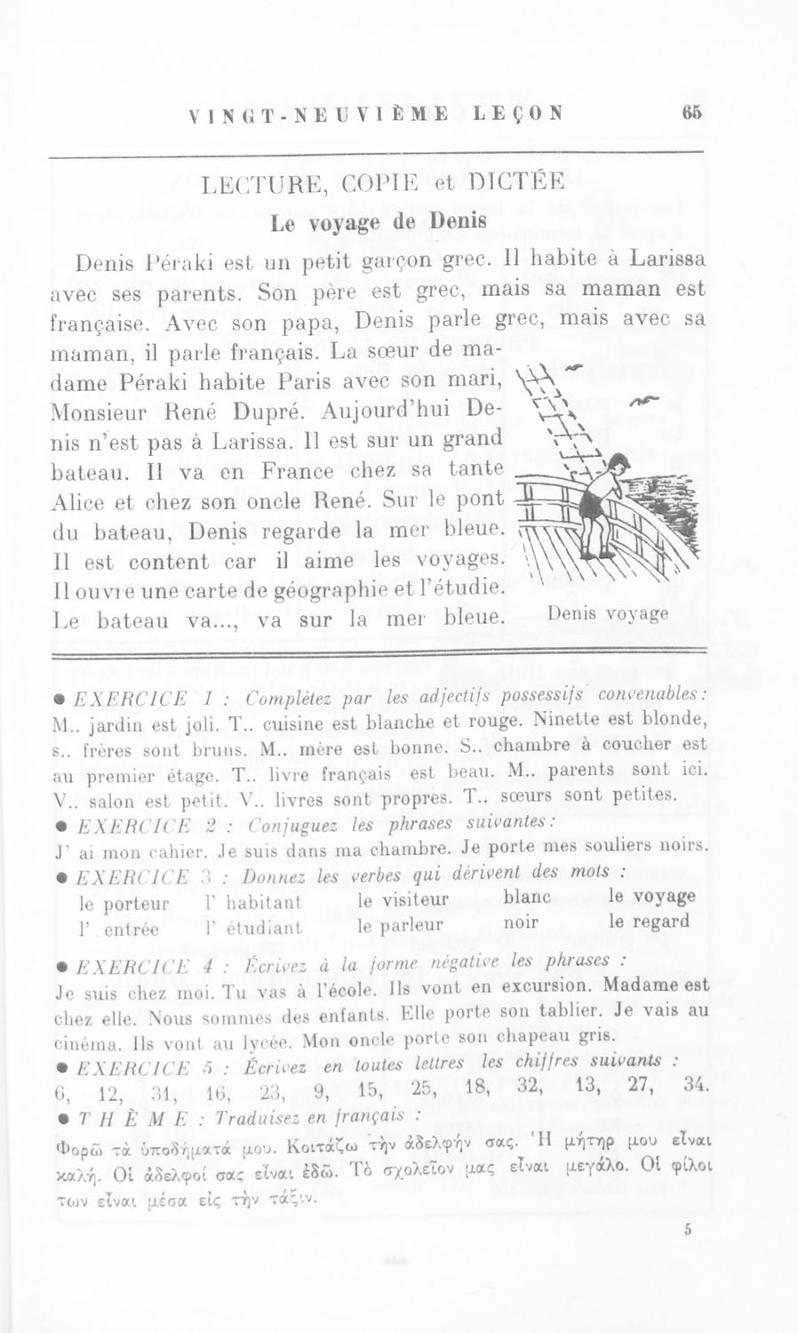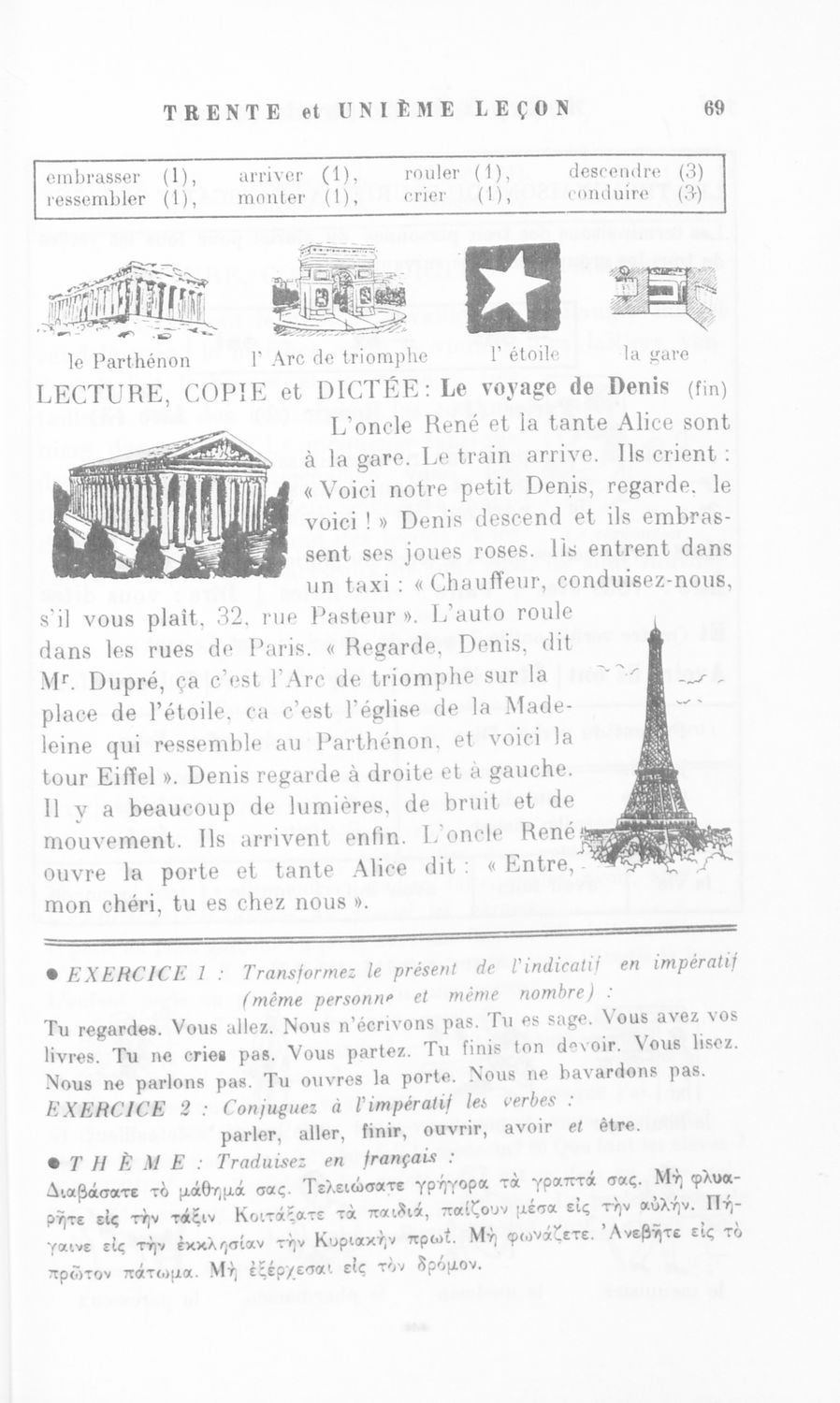 Πρόκειται για το Α΄ μέρος σχολικού εγχειριδίου το οποίο μέσα από μικρά αυτοτελή μαθήματα προοριζόταν για τη διδασκαλία του μαθήματος της Γαλλικής γλώσσας. Φέρει λίγες προσωπικές σημειώσεις του μαθητή.